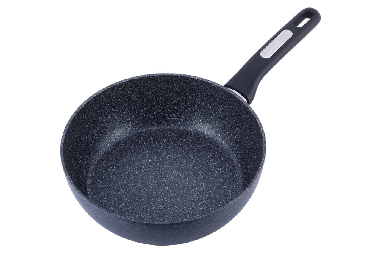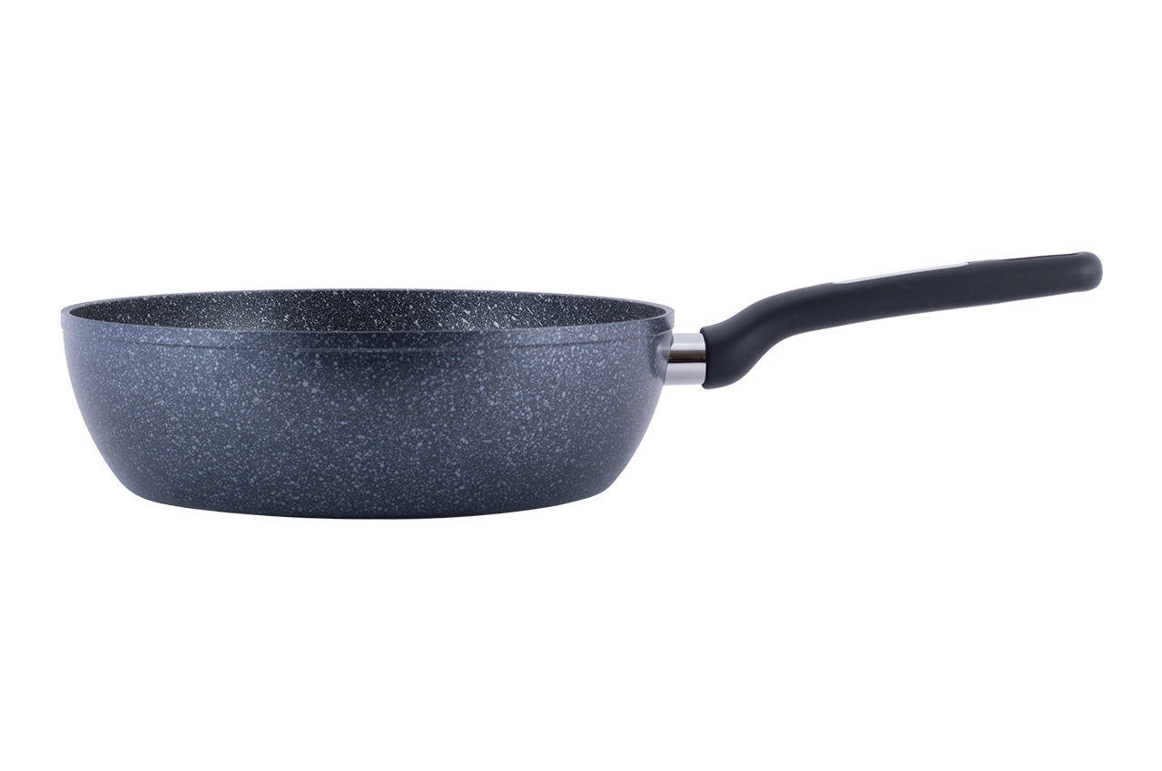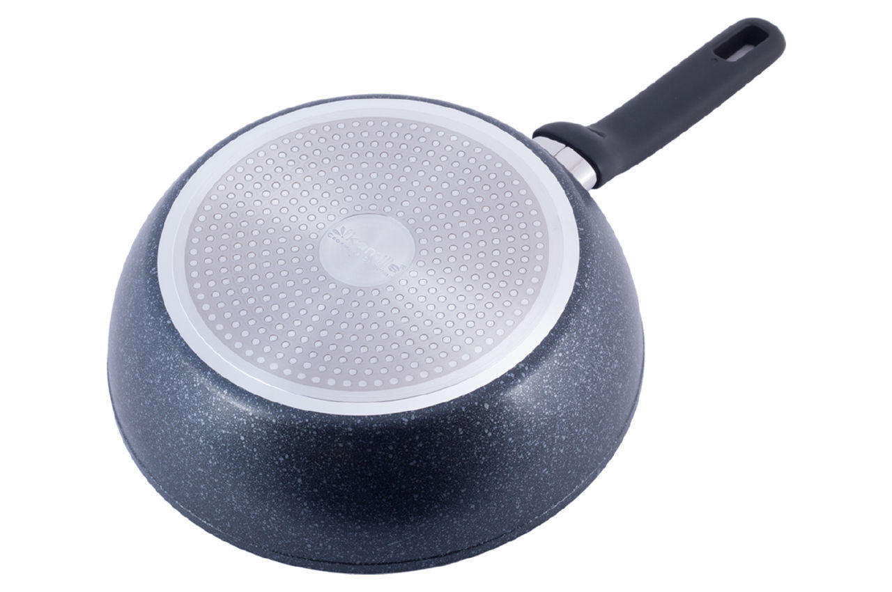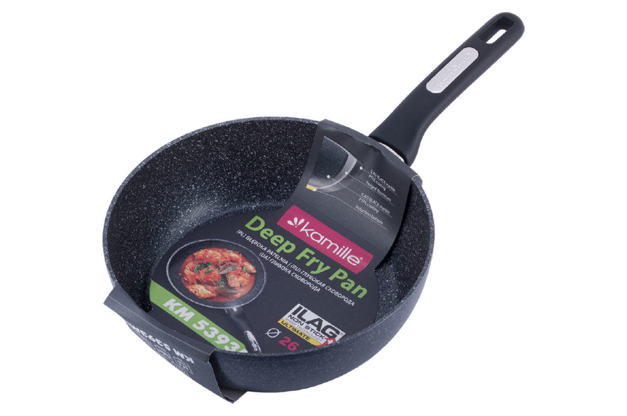 Сковорода антипригарна Kamille - 260 мм Ilag Black Marble глибока. Завдяки міцному антипригарному покриттю, така сковорода стійка до механічних впливів, за рахунок чого значно збільшується термін її служби. Сковорода нагрівається рівномірно, не створюючи перегрітих ділянок і холодних країв, навіть у тих випадках, коли процес приготування їжі йде на невеликому вогні. У результаті скорочується час приготування страви і зменшується ризик є суміш недосмажене або пережареної їжі.