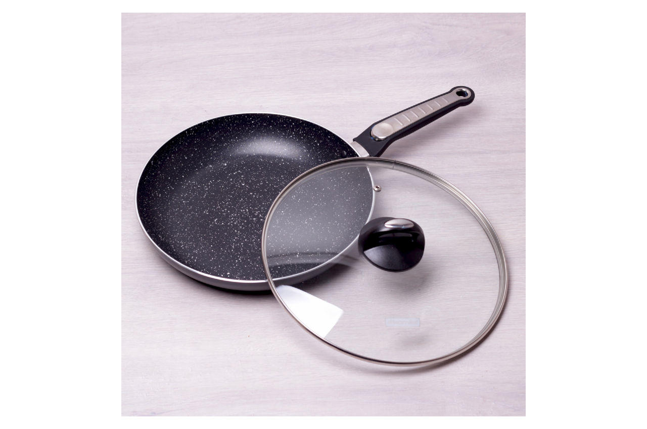 Сковорода антипригарна Kamille - 260 мм мармур з кришкою