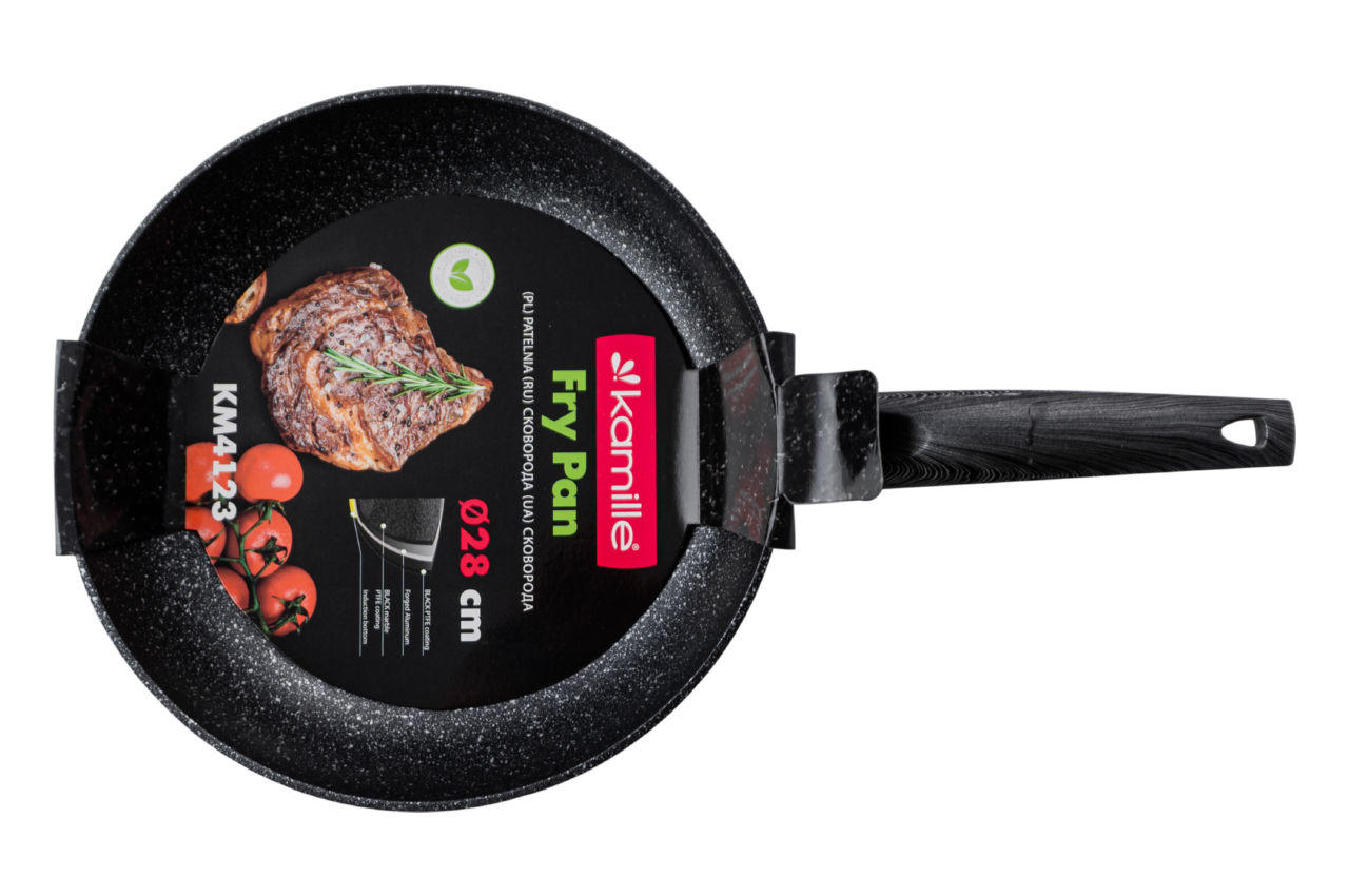Антипригарна сковорода Kamille - 280 мм Black Marble. Кухня без гарної сковороди, бажано не однієї, просто немислима. Особливості: проста та зручна у використанні відмінні антипригарні якості, має п'ятишарове капсульне дно, відрізняється високою міцністю та довговічністю, легко піддається чищенню.