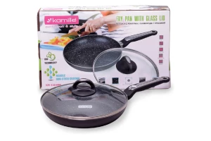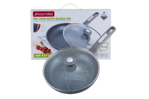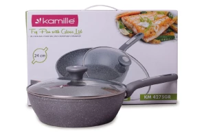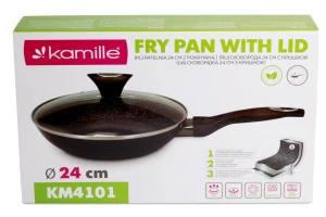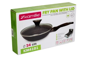 Литий алюмінініевий корпус з антипригарним покриттям Quan Tanium. Товщина стінок - 5 мм. Индукционное дно стійке деформації. Товщина дна - 5 мм. Скляна кришка з термостійкого скла з отвором для виходу пари. Ергономічна що не нагрівається ручка. Підходить для всіх типів плит і варильних поверхонь.