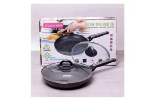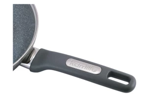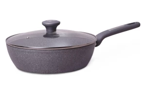 Антипригарне покриття Quan Tanium з частинками титану. Скляна кришка з термостійкого скла з отвором для виходу пари. Ергономічна що не нагрівається ручка. Индукционное дно. Високоякісний литий алюміній.