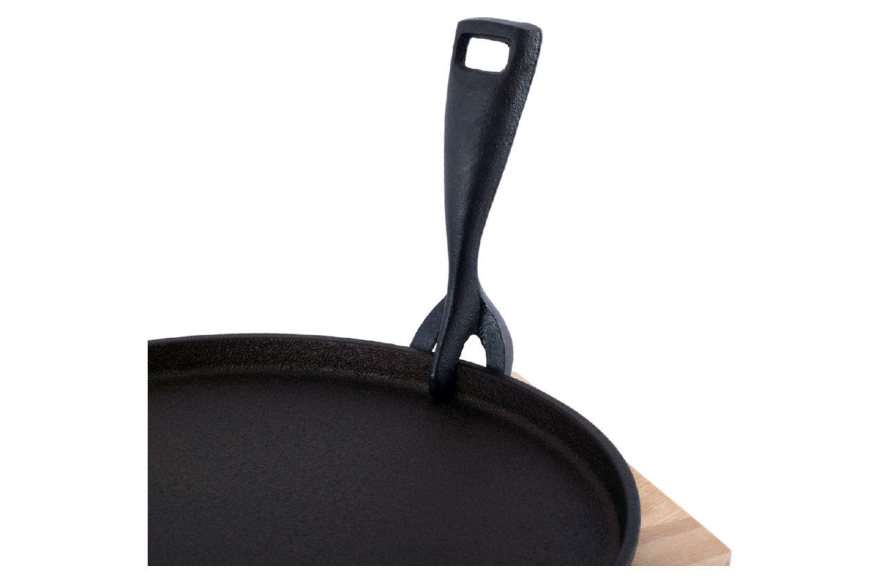 Сковорода-чавунна Kamille — ексклюзивна пропозиція нашого інтернет-магазину. Завдяки міцному покриттю, така сковорода стійка до механічних впливів, за рахунок чого значно збільшується термін її служби. Сковорода-чавунна нагрівається рівномірно, не створюючи перегрітих ділянок і холодних країв, навіть у тих випадках, коли процес приготування їжі йде на невеликому вогні. У результаті скорочується час приготування страви і зменшується ризик є суміш недосмажене або пережареної їжі. Вже після першого використання сковороди-чавунної Ви будете дивуватися, як могли обходиться без неї раніше. Сковорода з дерев'яною підставкою і знімною ручкою. Матеріал: чавун. Форма: кругла. Діаметр: 25см. Висота з підставкою: 3,5 див. Довжина знімної ручки: 13см. Матеріал ручки: чавун.