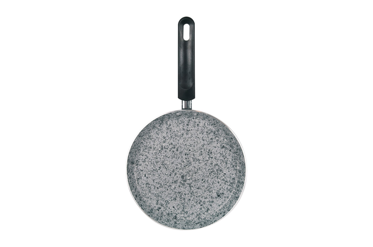 Сковорода антипригарна млинець Maestro діаметром 240 мм з литого алюмінію на допомогу хазяйкам. Ледве помітна вага виробу дозволяє підкидати десерти на висоту 10-20 см від розпаленої поверхні улюблений трюк професійних кондитерів. Посилене гранітне покриття в рази підвищує стійкість посуду до ударів та подряпин. Готувати можна з мінімальною кількістю олії. Безпека хвату в будь-якому положенні сковороди забезпечує термостійка ручка із пластику. Крім млинців у ній зручно випікати пишні капкейки, коржики, оладки та дріжджове тісто для піци.