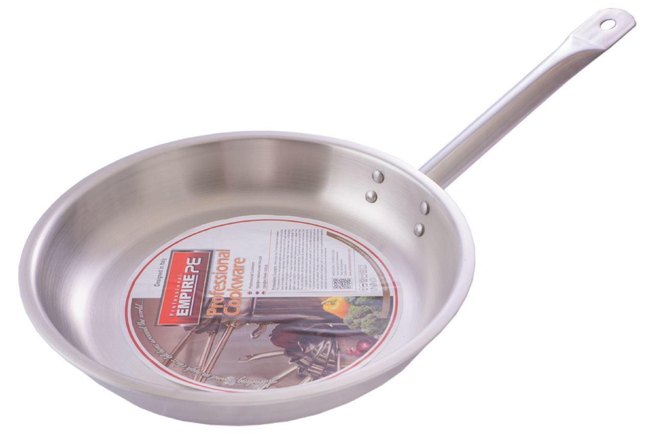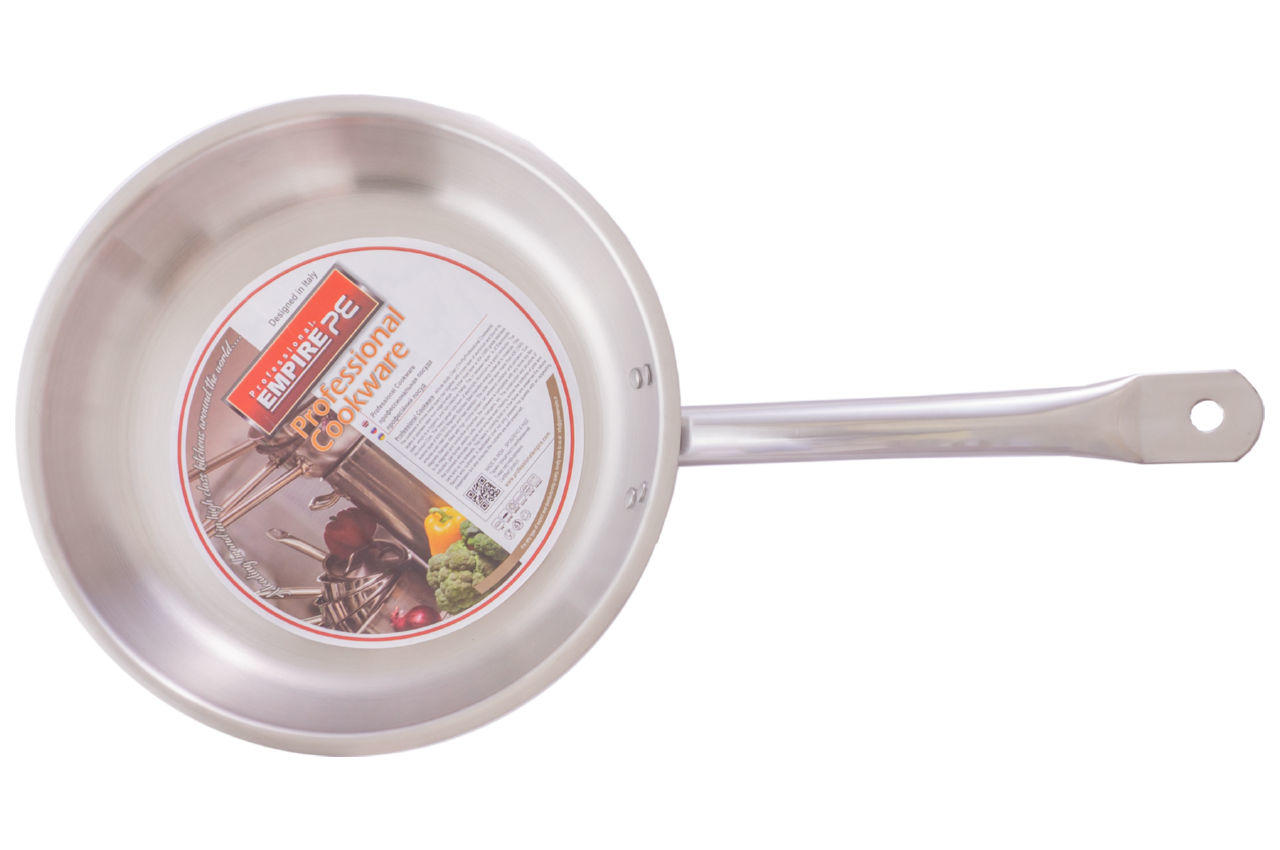 Сковорода нержавіюча Empire - 280 мм Pro виготовлена з якісної нержавіючої сталі. Нагрівається рівномірно, не створюючи перегрітих ділянок і холодних країв, навіть у тих випадках, коли процес приготування їжі йде на невеликому вогні. У результаті скорочується час приготування страви та зменшується ризик їсти суміш недосмаженої або пересмаженої їжі.