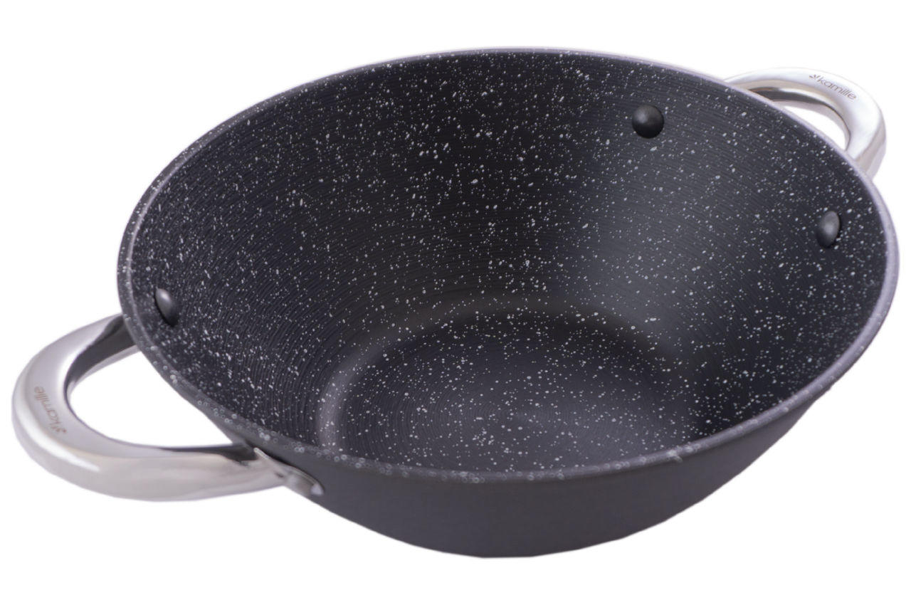Сковорода WOK чавунна Kamille - 260 мм x 3 л мармур з кришкою