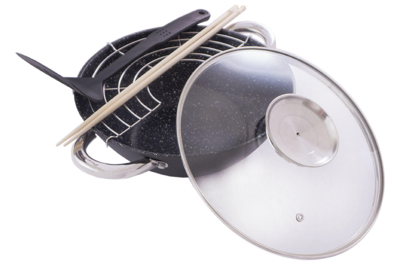 Сковорода WOK чавунна Kamille - 260 мм x 3 л мармур з кришкою - ексклюзивна пропозиція нашого інтернет-магазину. Завдяки міцному покриттю, такий казан стійка до механічних впливів, за рахунок чого значно збільшується термін його служби. Казан нагрівається рівномірно, не створюючи перегрітих ділянок і холодних країв, навіть у тих випадках, коли процес приготування їжі йде на невеликому вогні. У результаті скорочується час приготування страви і зменшується ризик є суміш недосмажене або пережареної їжі. Вже після першого використання казана Ви будете дивуватися, як могли обходитися без нього раніше. Матеріал: чавун, з антипригарним покриттям. В комплекті: кришка з арома-ручкою, нейлонова лопатка, бамбукові палички, сітка.
