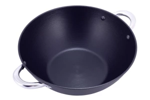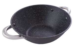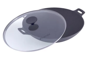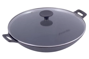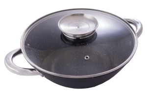 Сковорода WOK чавунна Kamille - 320 мм x 6,5 л мармур з кришкою