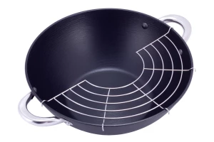 Сковорода WOK чавунна Kamille — ексклюзивна пропозиція нашого інтернет-магазину. Завдяки міцному гранітного покриття, такий казан стійкий до механічних впливів, за рахунок чого значно збільшується термін його служби. Казан нагрівається рівномірно, не створюючи перегрітих ділянок і холодних країв, навіть у тих випадках, коли процес приготування їжі йде на невеликому вогні. У результаті скорочується час приготування страви і зменшується ризик є суміш недосмажене або пережареної їжі. Вже після першого використання казана Ви будете дивуватися, як могли обходиться без неї раніше. Матеріал: чавун, з антипригарним покриттям. В комплекті: кришка з арома-ручкою, нейлонова лопатка, бамбукові палички, сітка.