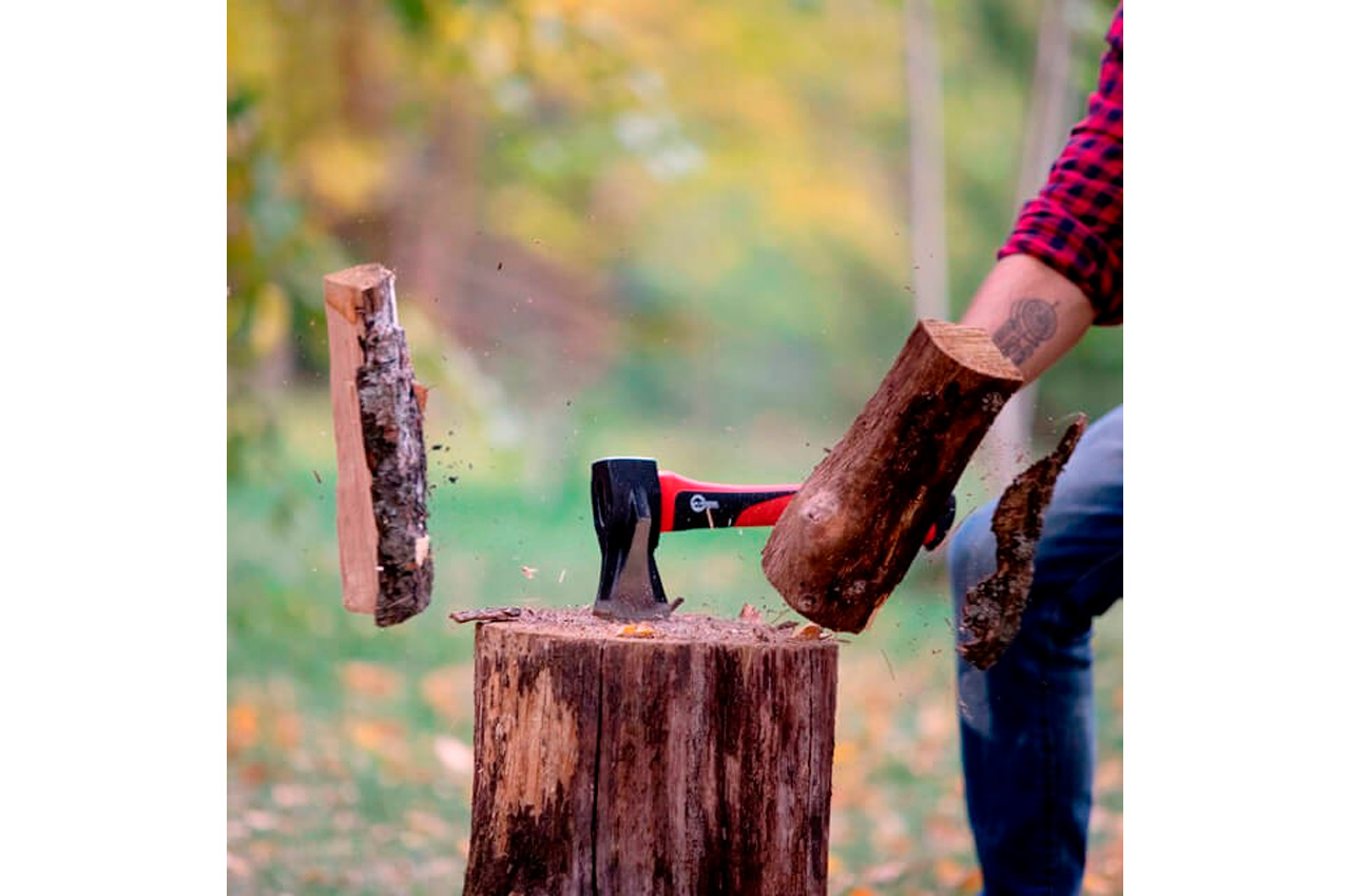 Сокира-колун в своєму призначенні дуже простий. Його основна і єдина задача - колоти дрова, з чим він успішно і справляється. Зносостійкий обух сокири вагою 1000 г виготовлений з високоякісної інструментальної сталі. Ударна частина клиноподібної форми переносить навантаження без пошкоджень. Двокомпонентна рукоять з фіберглаcса з прогумованими вставками. - міцна і довговічна, а також знижує силу віддачі при ударі. Колун не вислизає з рук навіть в дощову погоду завдяки гумовим вставкам. Оптимальна довжина рукоятки в 320 мм дозволяє наносити точні і потужні удари інструментом, легко розколюючи деревину. Візьміть його в руки, і Ви зрозумієте, наскільки він збалансований. Топорище і обух надійно закріплені один до одного, немає ніякого люфту, навіть при великій ударного навантаження. Силіконова накладка на лезо захищає від випадкових порізів і пошкоджень. Червоно-чорне забарвлення сокири допомагає швидко його знаходити очима навіть в густому лісі або в траві. На кінці рукоятки розташовується отвір, за яке сокиру можна підвісити на стіну для зберігання. Економте свої сили і час з колуном НT-0274. Особливості Заощаджує час і сили при розколі дров. Коліт без особливих зусиль завдяки клиноподібної товстому лезу, виготовленому з високоякісної інструментальної сталі. Завдає максимально потужні удари завдяки оптимальній довжині рукоятки, 320 мм і обуха вагою 1000 р Прорезиненная міцна рукоять з фибергласса щільно лежить в руці. Силіконова накладка на лезо захищає від випадкових ушкоджень. Його не втратити, завдяки яскравому кольору, він завжди виділяється на тлі листя і трави. Загальна вага колуна - 1450 р вага обуха - 1000 г. Загальна довжина: 380 мм; Матеріал рукоятки: фіберглас