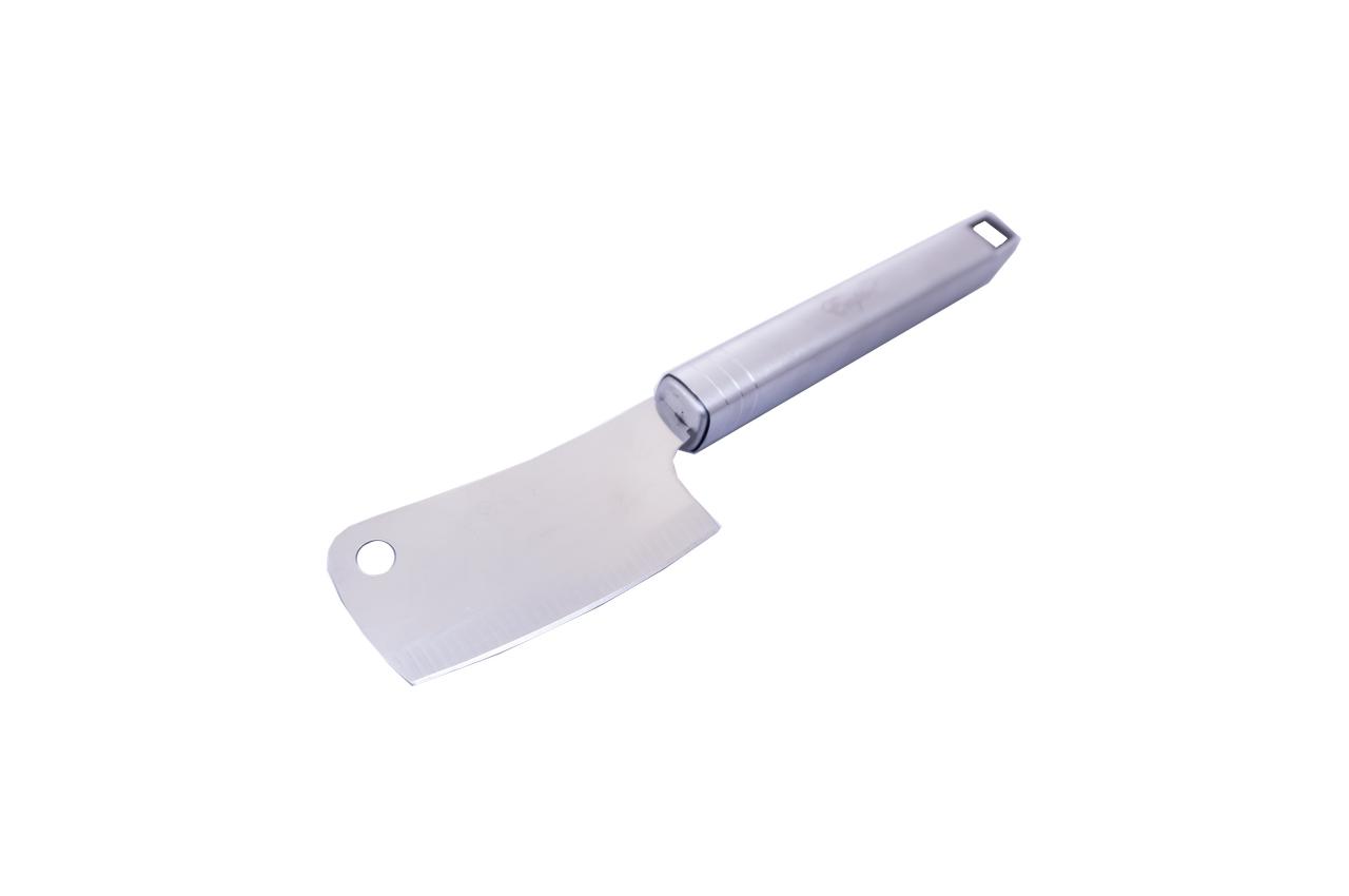 Кухонний топірець Empire розміром 215х37 ммпонадобітся для правильної обробки птиці, риби або, наприклад, великих шматків м'яса з кістками. Інструмент виготовлений з харчової нержавійки з підвищеною стійкістю до корозії. Він добре витримує побутові впливу, роками зберігає природний блиск і не псується під дією температурних перепадів. Ергономічна ручка з силікону забезпечує безпеку хвата в будь-якому положенні топірця. До інших переваг моделі слід зарахувати хорошу балансування, сверхострое лезо і простий догляд.