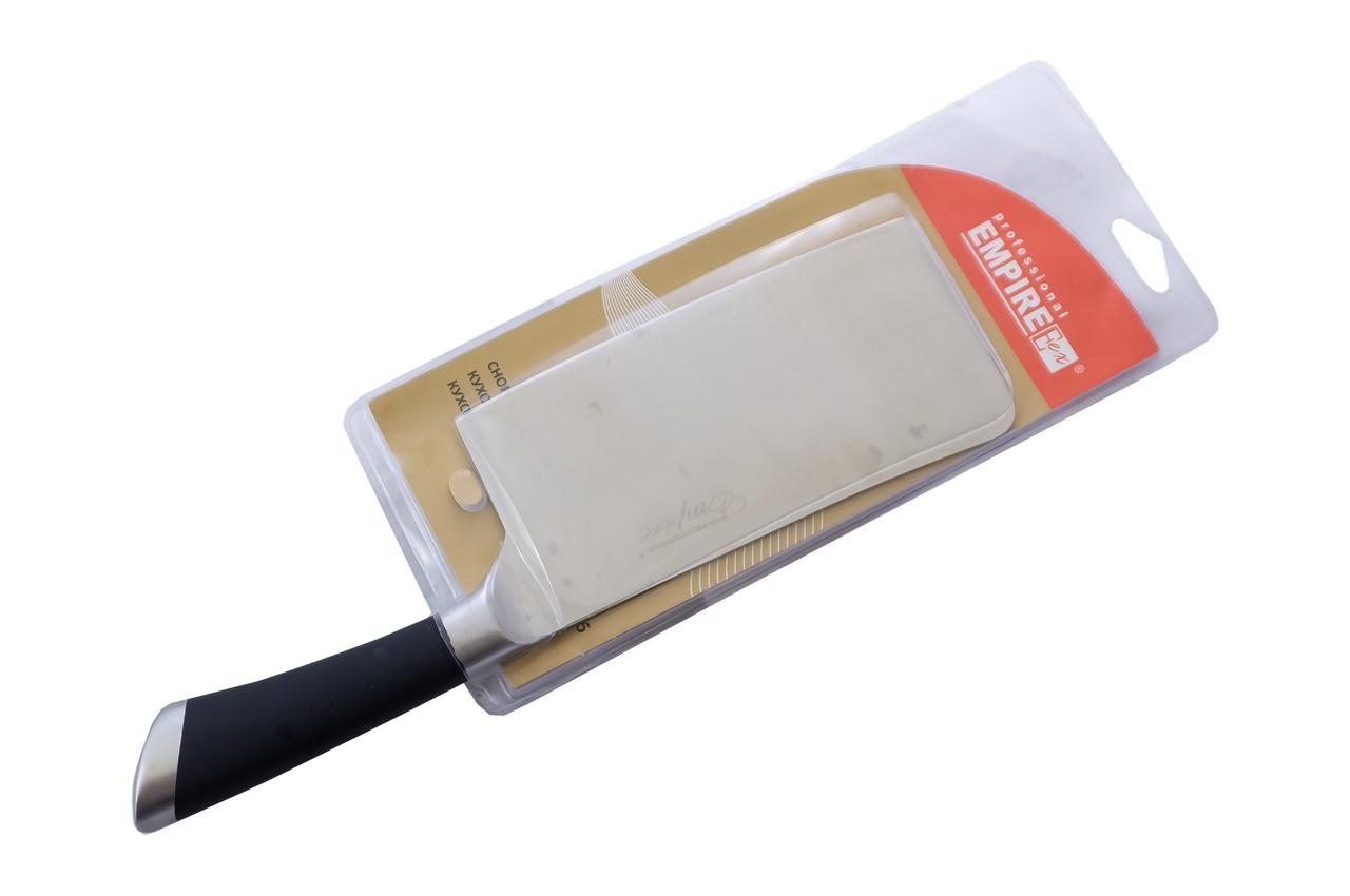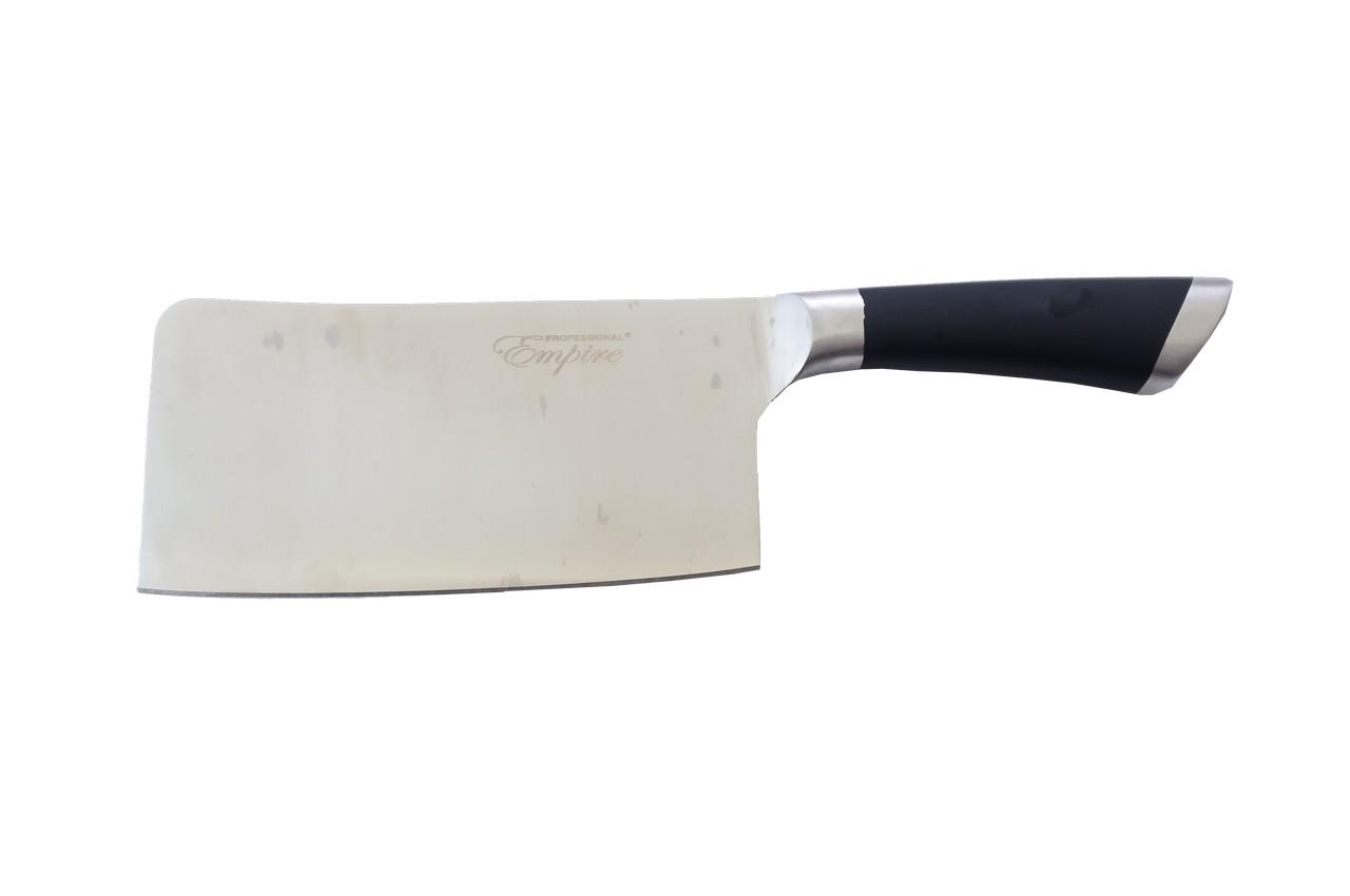 Кухонний топірець Empire розміром 320х80 ммпонадобітся для правильної обробки птиці, риби або, наприклад, великих шматків м'яса з кістками. Інструмент виготовлений з харчової нержавійки з підвищеною стійкістю до корозії. Він добре витримує побутові впливу, роками зберігає природний блиск і не псується під дією температурних перепадів. Ергономічна ручка з силікону забезпечує безпеку хвата в будь-якому положенні топірця. До інших переваг моделі слід зарахувати хорошу балансування, сверхострое лезо довжиною 180 мм і простий догляд.