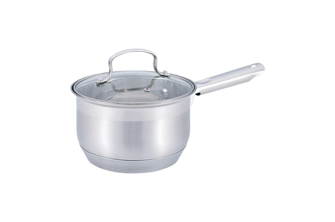 Ківш Maestro MR 3512-16S об'ємом 2,1 літра, виготовлений з високоякісної нержавіючої сталі, комбінований матовий корпус з дзеркальною смугою вгорі. На передній стороні нанесено логотип Maestro Basic. Товсте термоакумулююче дно підходить для будь-яких джерел тепла, включаючи індукцію. Скляна кришка діаметром 16 см з отвором для виходу пари та захисним сталевим обідком по периметру.