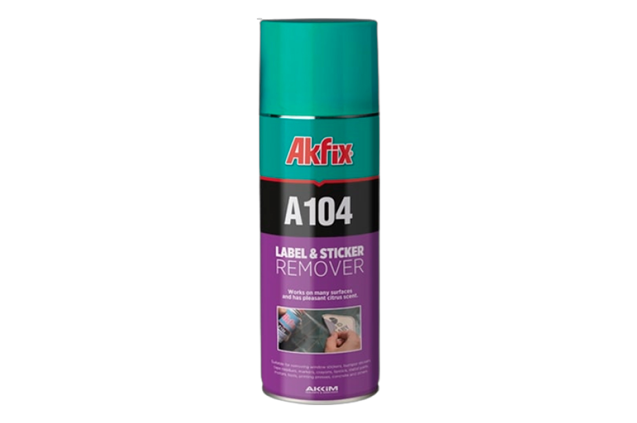 Akfix C104 - спрей для видалення наклейок, ярликів, етикеток і залишків клею з поверхонь. Властивості Akfix C104: спрей безпосередньо проникає в поверхню наклейок і швидко розм'якшує клей; не пошкоджує фарбу і пластикові поверхні; забезпечує швидке видалення; створює захисний шар на поверхнях; працює на більшості типів поверхонь; має приємний цитрусовий запах.