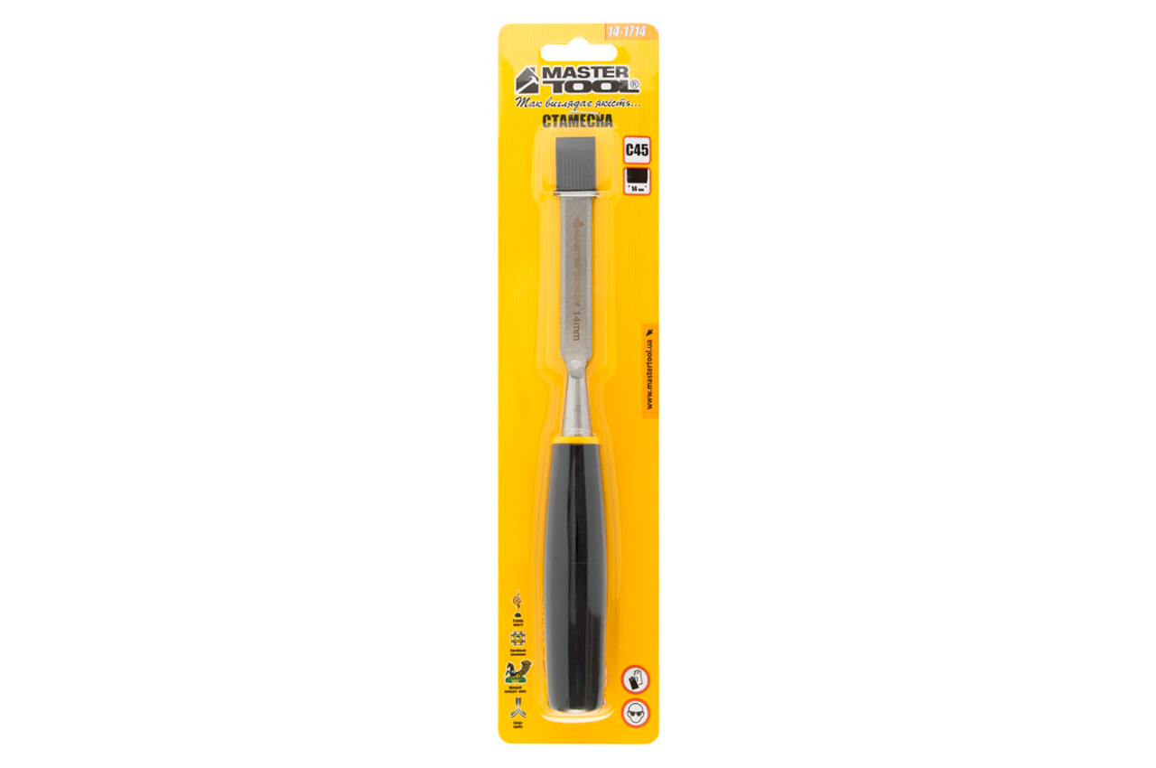 Стамеска 14 мм, пластикова рукоятка. Призначені для стругання, вибірки неглибоких гнізд, пазів, прорізання отворів в деревині м'яких та твердих порід.