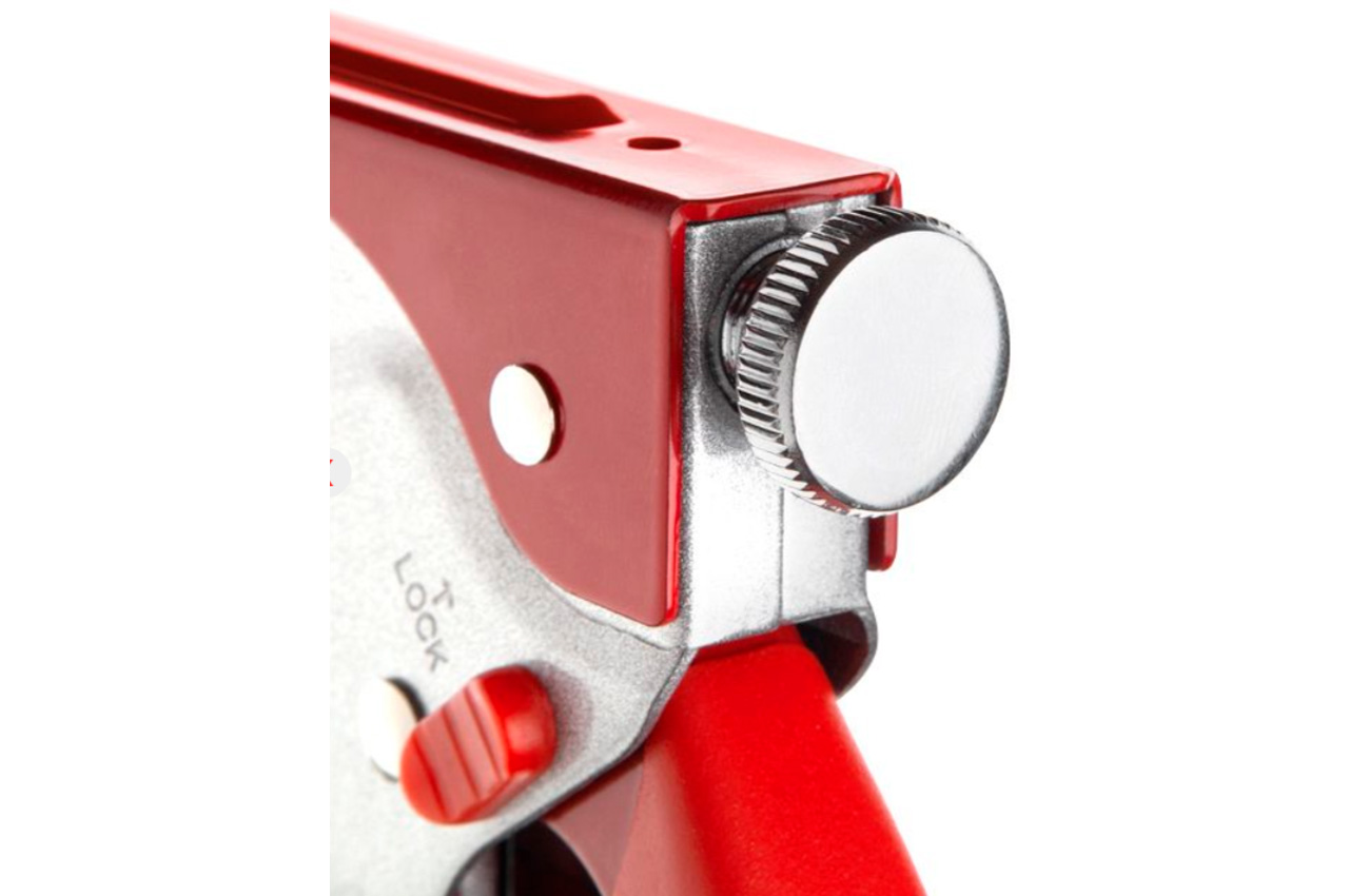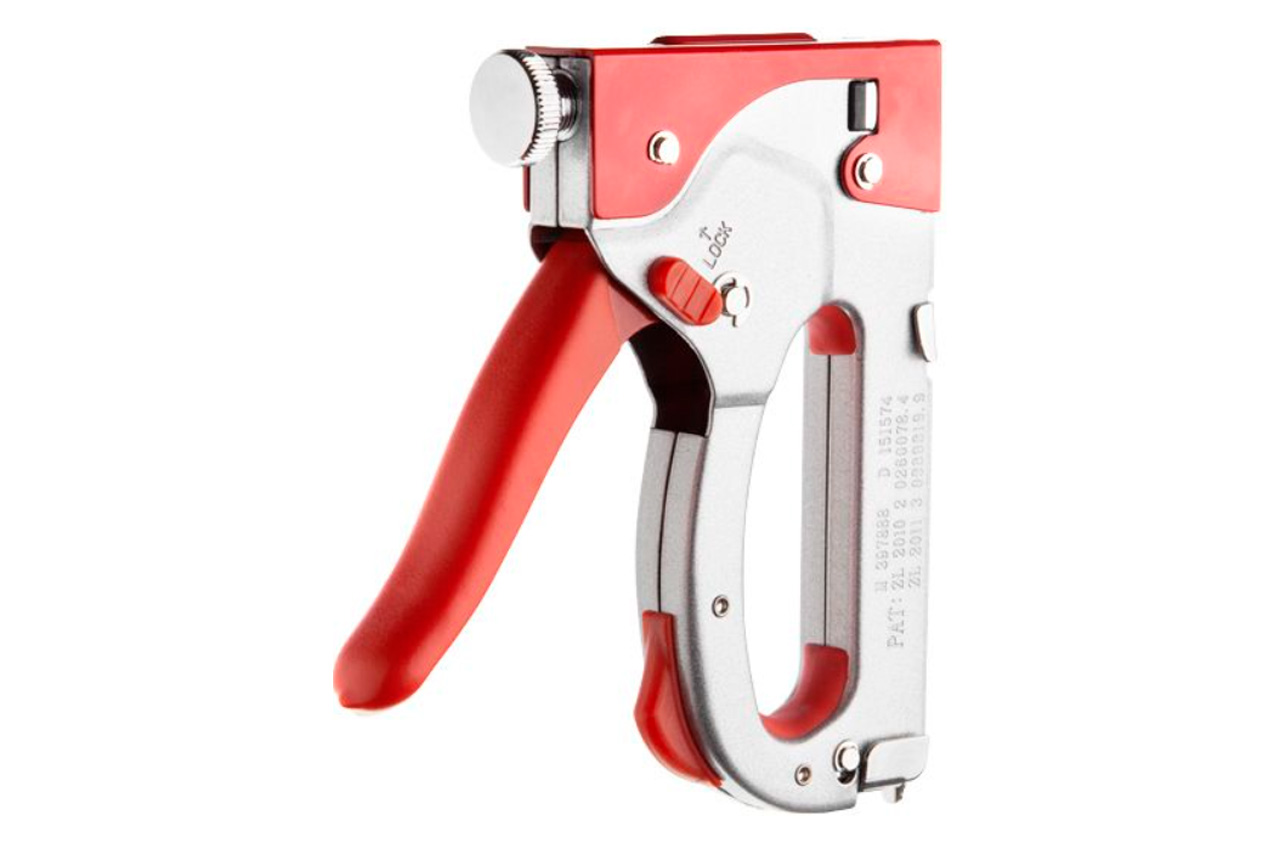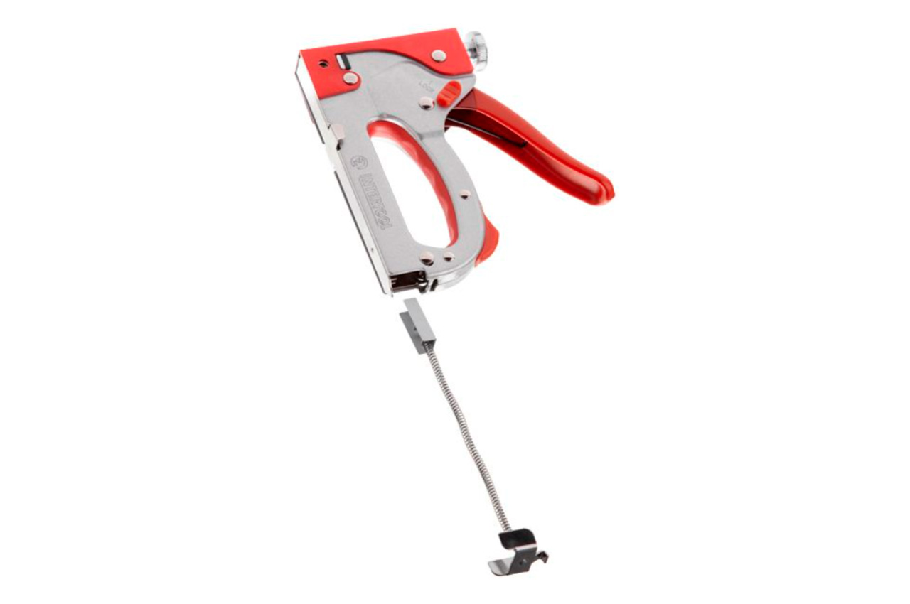 Механічний скобозабивні пістолет. Степлер повністю виготовлений з металу, що значно збільшує термін служби інструменту. Зручна рифлена рукоять забезпечує комфортну роботу. Оснащений зручним гвинтом, що регулює силу удару. Металева скоба-запобіжник фіксує рукоятку поза роботою. Степлер може працювати зі скобами 11,3 * 4-14 мм і перетином 0,7 мм. Висота скоби: 4-14 мм; Ширина скоби: 11.3 мм; Перетин скоби: 0.7 мм; Покриття рукоятки: гума
