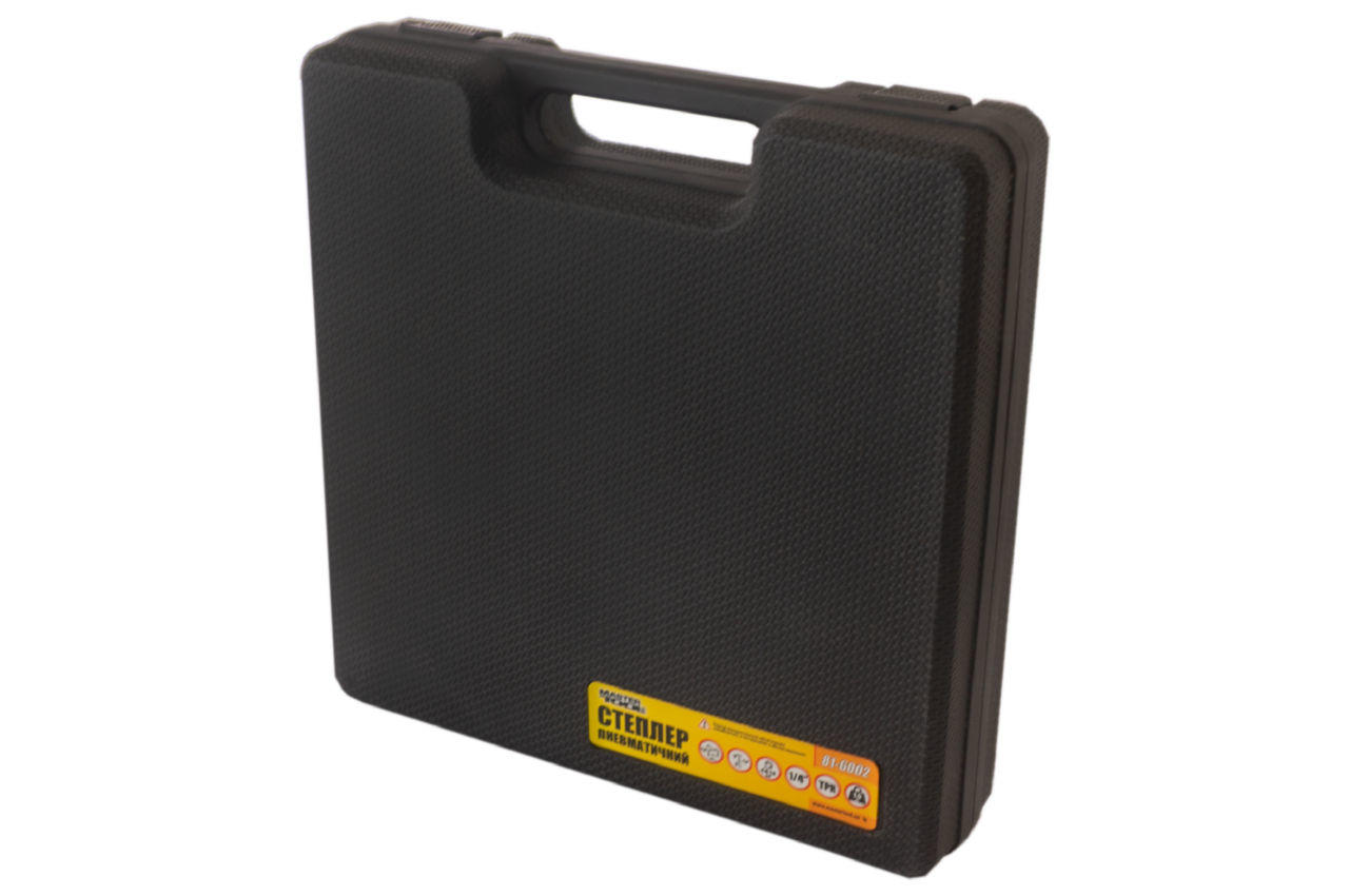 Використовується в меблевій промисловості та при виконанні столярних робіт, для скріплення заготовок з деревини та інших матеріалів, таких як: гіпсокартон, фанера, ДВП, шкіра, тканина та інші. • корпус з алюмінієвого сплаву • рукоятка з TPR покриттям • робочий тиск 4.0 - 7.0 bar • скоба - 5.7*1*1.25 мм (16-40 мм) ширина скоби - 5.7 мм висота скоби - 16-40 мм перетин скоби - 1*1.25 мм • цвях - 1*1.25 мм (10-50 мм) висота цвяха - 10-50 мм перетин цвяха - 1*1.25 • місткість магазину - 100 скоб або цвяхів • швидке та зручне завантаження скоб та цвяхів • регулювання напряму виведення повітря • блокування від випадкового натискання • швидкоз’ємне з’єднання 1/4"
