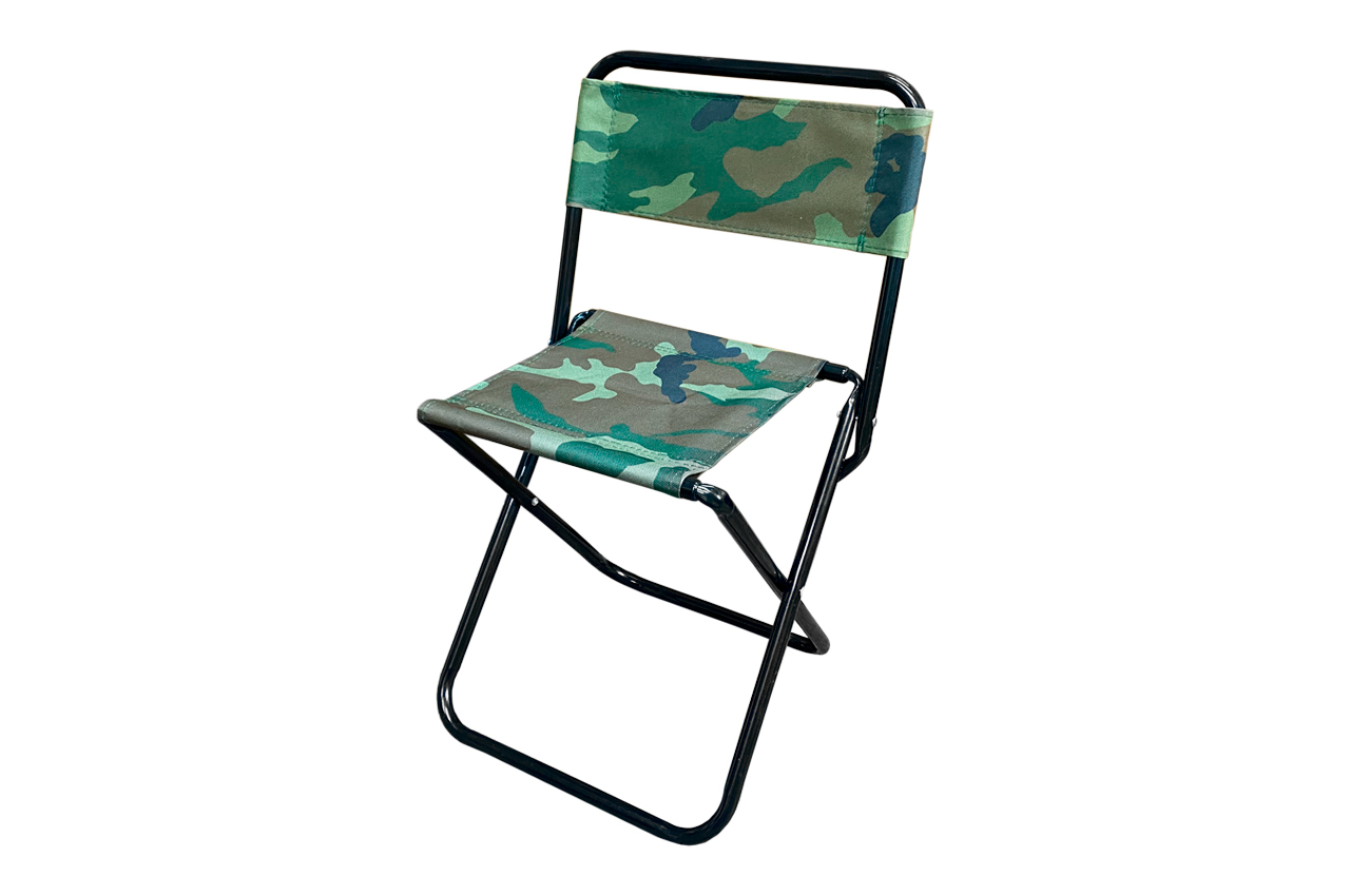 Зручний та компактний складаний стілець — ідеальне рішення для пікніків, риболовлі, кемпінгу, дачі або відпочинку на природі. Легка металева конструкція забезпечує надійність та стійкість, а міцне текстильне сидіння з камуфляжним візерунком легко чиститься та стійке до зношування. Стілець швидко складається, займає мінімум місця при транспортуванні та зберіганні. Ергономічна форма сидіння і спинки забезпечує комфорт навіть під час тривалого використання.