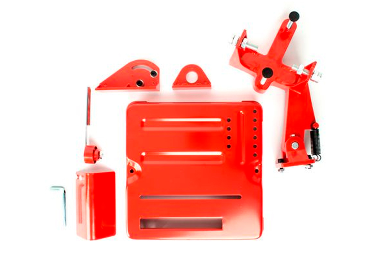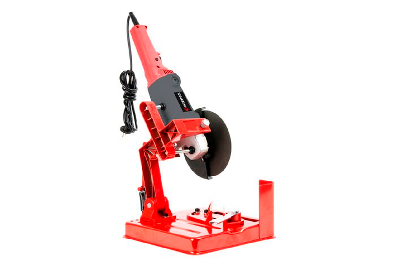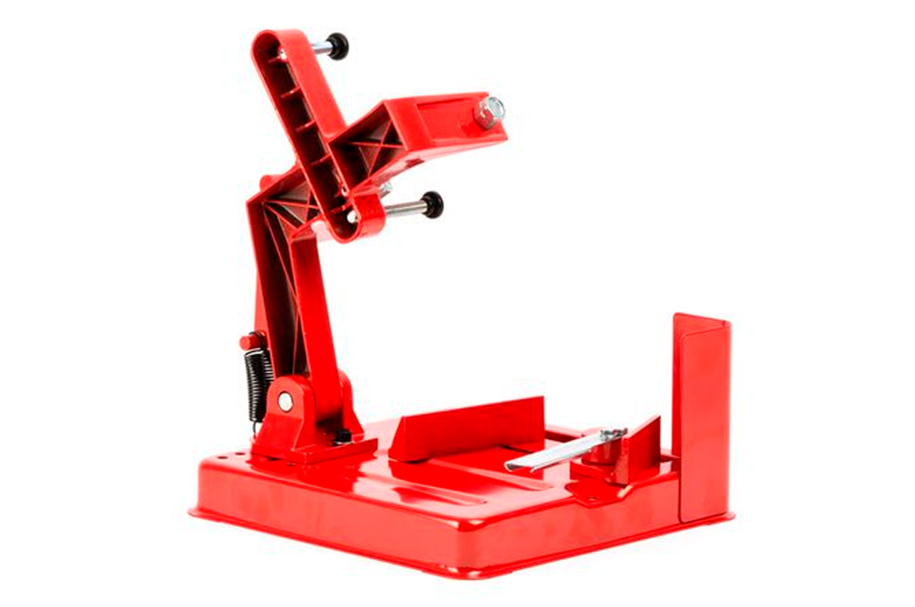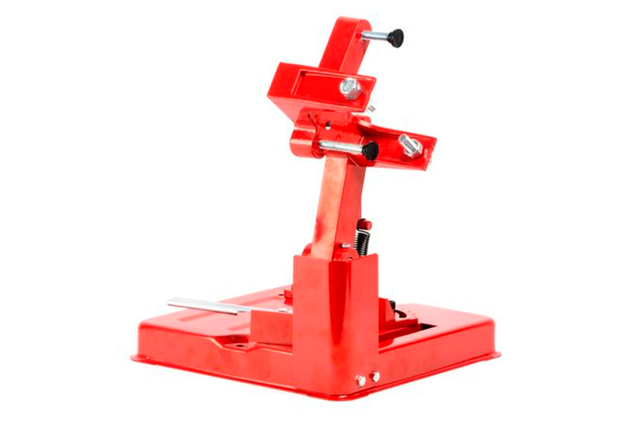 Стійка під кутову шліфувальну машину 180-230 мм. Використовується, коли необхідна висока точність і акуратність розрізу матеріалу під кутом 45 або 90 °. Застосування стійки дозволяє мінімізувати відхилення від необхідного кута і знизити вібрації машинки і знизити силу бокового тертя, що в свою чергу, продовжує життя самого інструменту. Діаметр УШМ: 180-230 мм