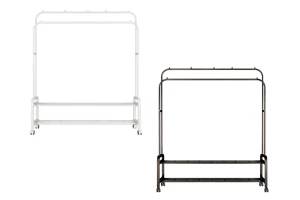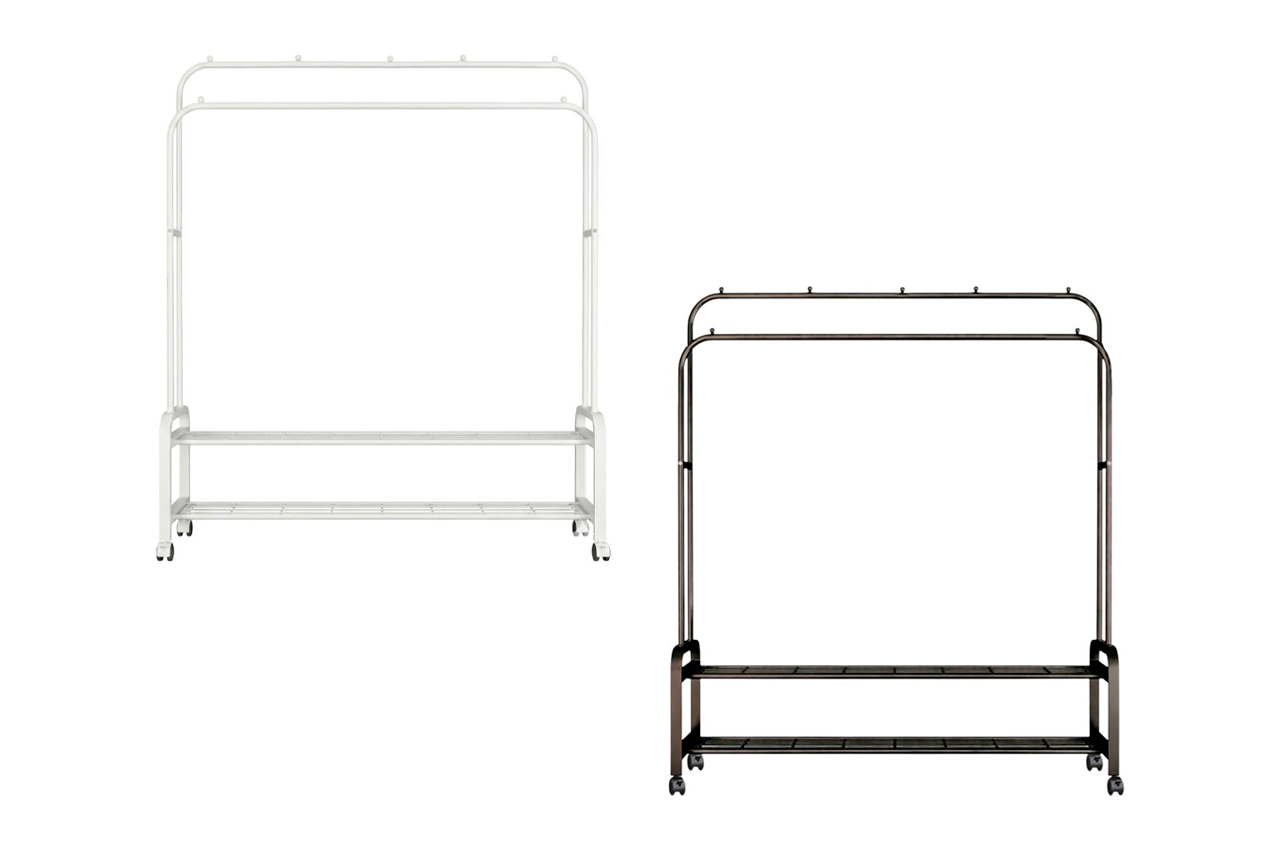 Стійка-вішалка металева, подвійна біла на колесах (68кг)- 1500х1100х570см