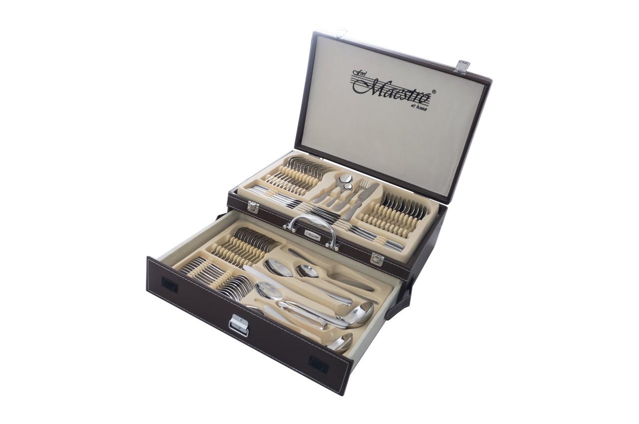 Набір столових приладів Maestro MR-1519-72 виготовлений із високоякісної нержавіючої сталі. При експлуатації столові прилади не гнуться, сталь не вступає в реакцію з продуктами. Набір столових приладів з 72 предметів, упакованих у подарункову валізу.