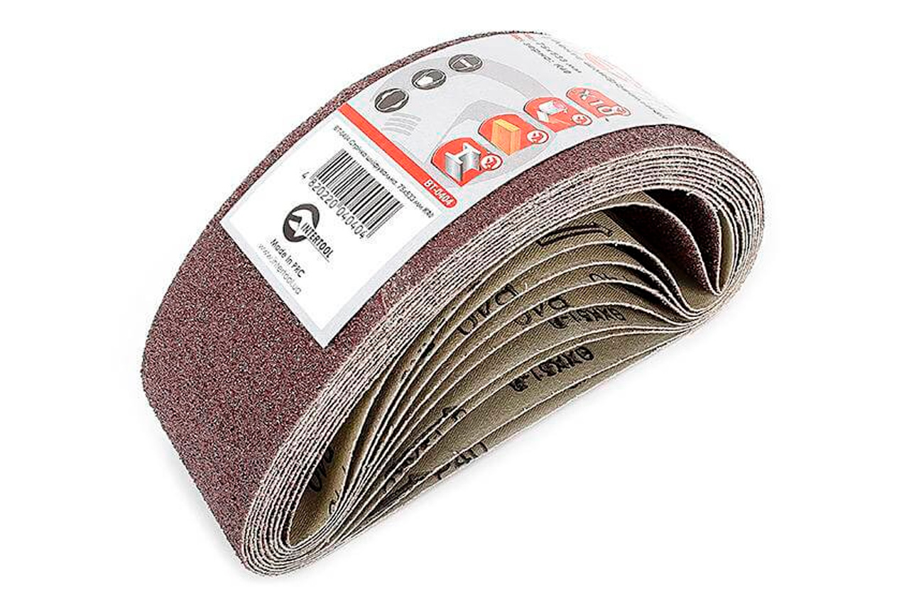 Шліфувальна стрічка призначена для обробки дерев'яних і металевих поверхонь. Підходить для прямих шліфувальних машин. Застосування нових технологій у виробництві дозволило виключити проблему забивання зерна, підвищити зносостійкість стрічок, а відповідно і продуктивність. Використовувані матеріали: основа - тканина абразивне зерно оксиди алюмінію (відкритого / закритого типу) сполучна зерно - смола. Розміри 75 x 533мм. Довжина стрічки: 533 мм; Ширина стрічки: 75 мм; Зернистість: 40; Кількість: 10 од