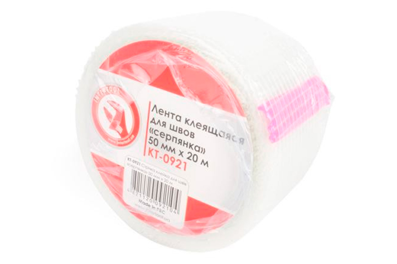 Стрічка клеїться для швів "серпянка" дозволить якісно армувати стики і шви гіпсокартону і гіпсокартонного волокна, дозволить зміцнити будь-які з'єднання і тріщини в будівельних конструкціях. Виготовлена з міцної склотканини з частотою сітки 64 клітини / дюйм2, щільністю 60 гр / м2, має ширину полотна 50 мм і довжину 20 м. Щільність: 60 г / м2; Частота сітки: 64 на дюйм2