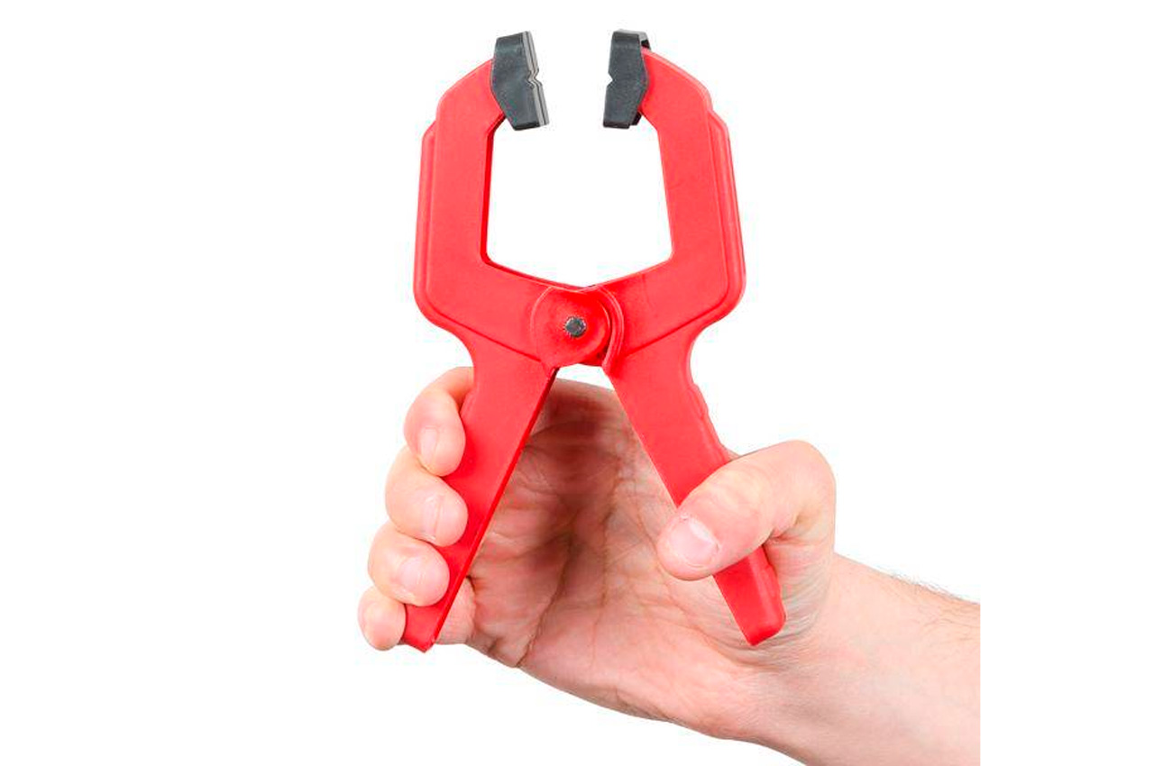 Легкий, компактний, ергономічний корпус виконаний з високоміцного пластика. Притискні губки також виконання з пластика, що захистить поверхню затискається вироби від ушкоджень і подряпин. Максимальна ширина захвату: 75 мм; Зусилля затиску: 15,3 кгс