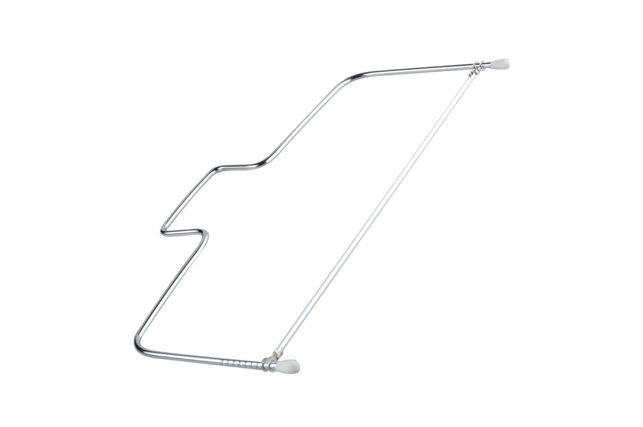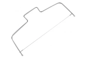 Струна-лезо кондитерська Empire довжиною 440 мм для нарізки тортів і бісквітів рівними частинами. Інструмент виготовлений з харчової нержавійки, тому добре витримує механічні дії. У порівнянні з пластиковими аналогами, важче, зате не открашівается продуктами, а при сильному натисканні не ламається. Відмінною особливістю моделі є просте регулювання струн. Загальна висота кондитерського девайса - 215 мм.