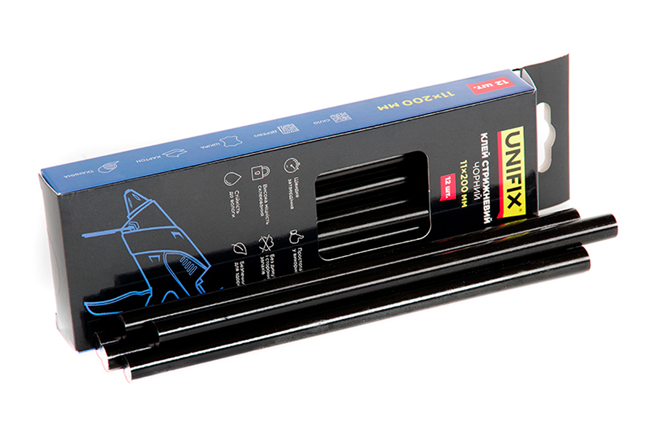 Стрижень клейовий Unifix - 11 x 200мм чорний (12шт)