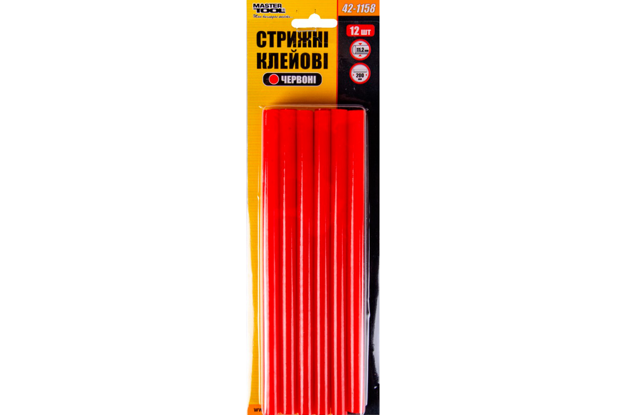 Стрижні клейові Mastertool - 11,2 x 200 мм червоні (12 шт.)