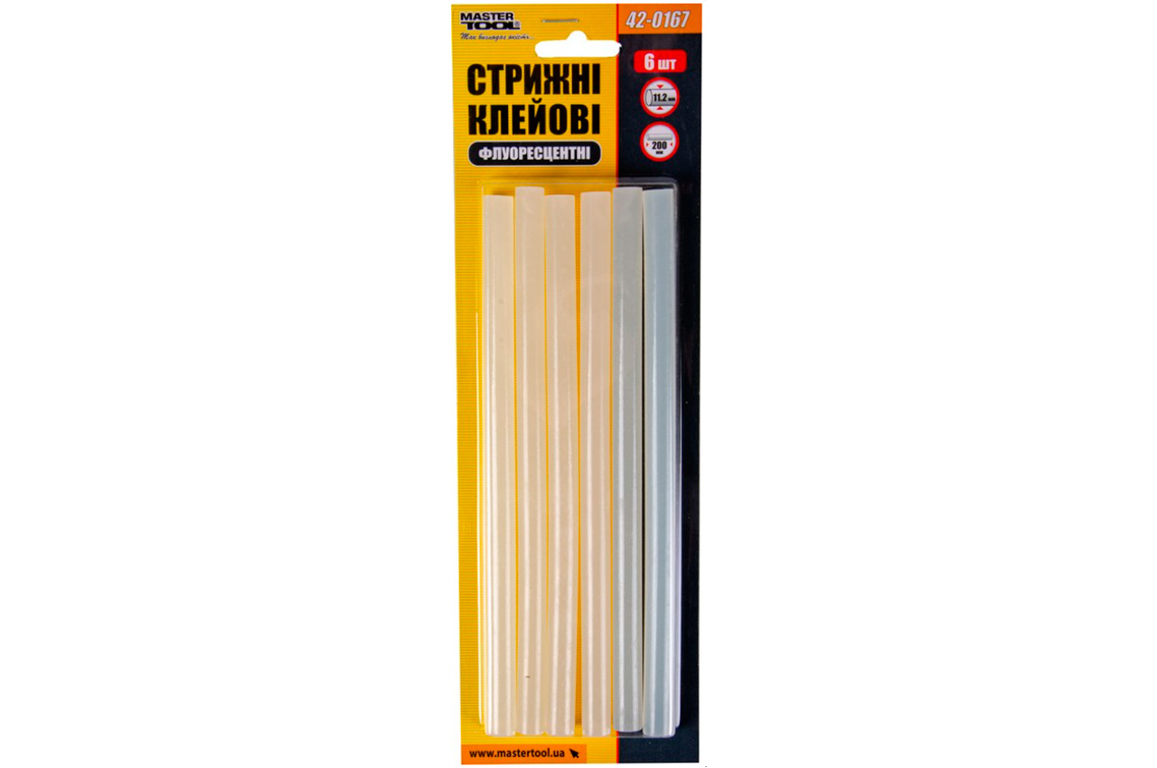 Стрижні клейові Mastertool - 11,2 x 200 мм флуоресцентні (6 шт.)