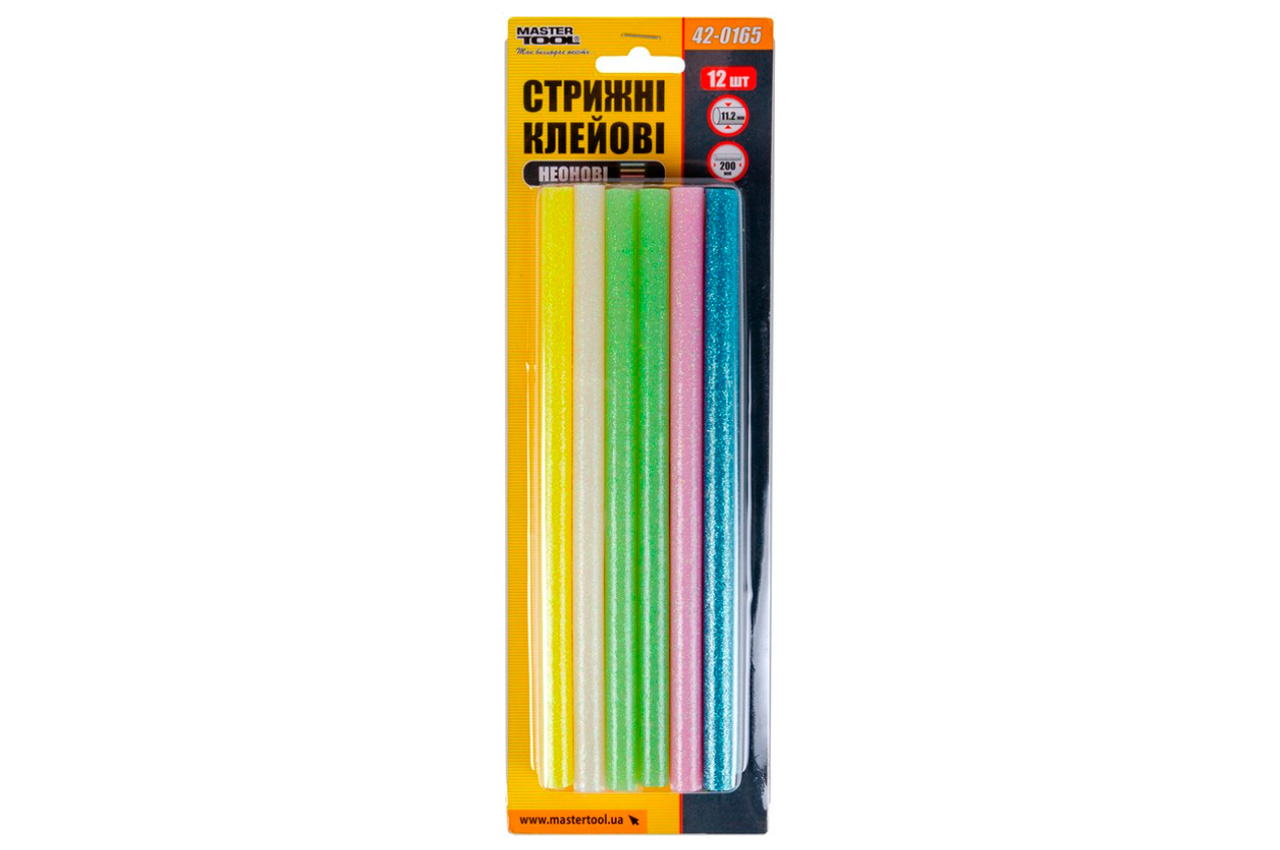 Стрижні клейові Mastertool - 11,2 x 200 мм кольорові неонові (12 шт.)