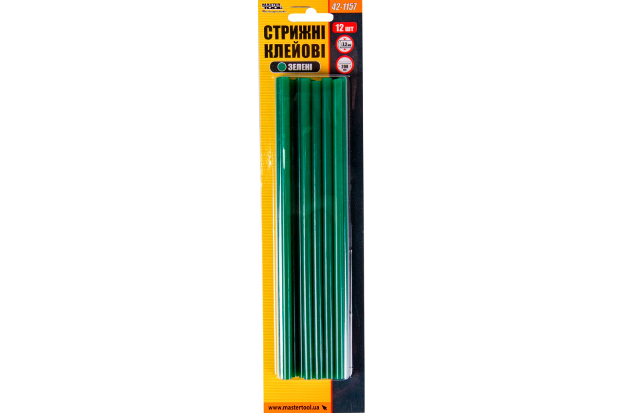 Стрижні клейові Mastertool - 7,2 x 200 мм зелені (12 шт.)