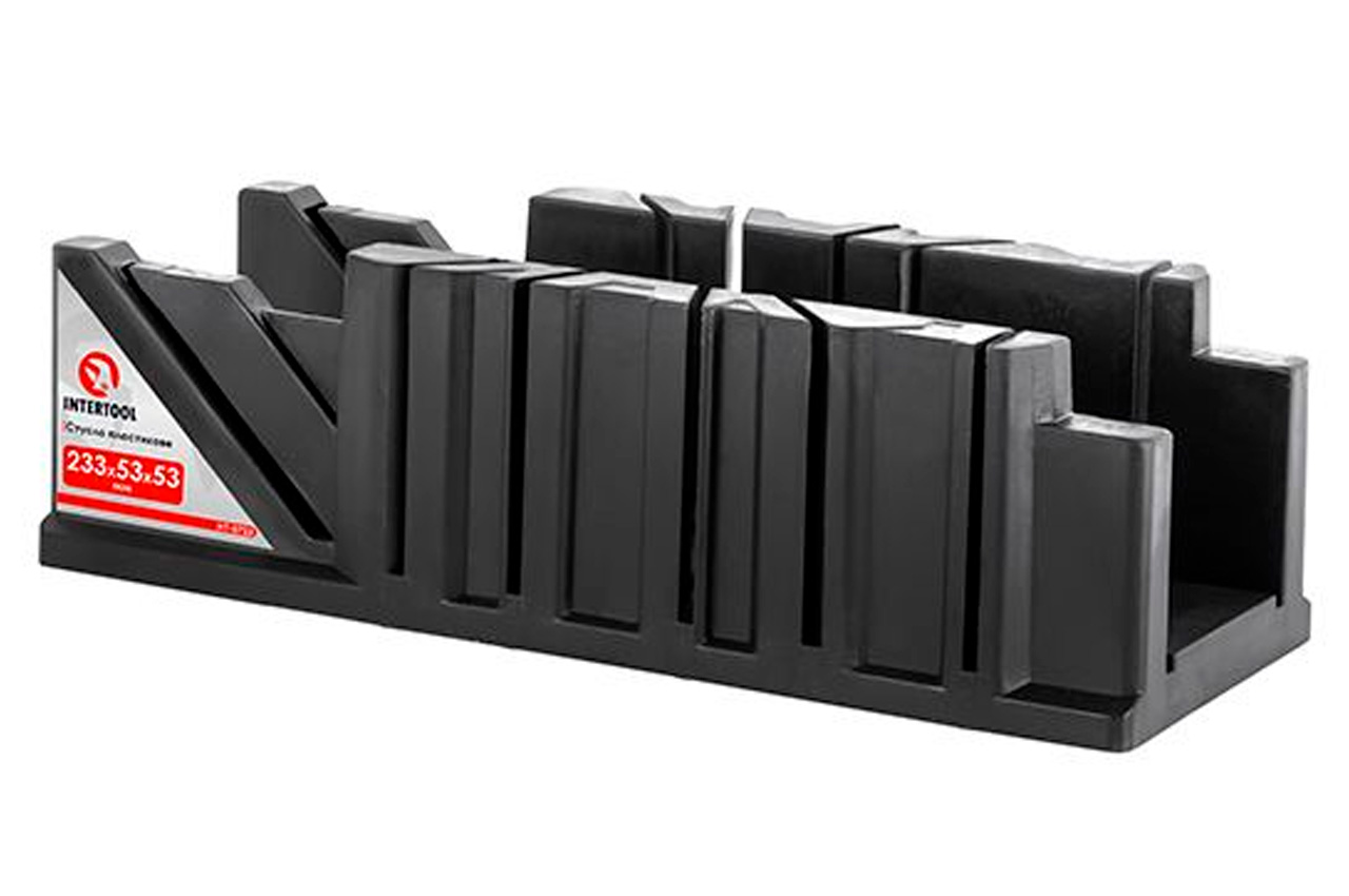 Пластикове стусло допоможе якісно виконати роботи по розпилюванню дерев'яних заготовок під певним кутом. Стислі являє собою виріб П-подібної форми, виконане з ABS-пластика. На його бічних стінках є вузькі наскрізні пропили під кутами 45 і 90 градусів, щодо лінії, уздовж якої розташовується заготівля. Завдяки цьому можна отримувати точні й акуратні пропили в поперечному, поздовжньому і кутовому перетині. Закріплення стусел на робочому місці проводиться за допомогою струбцин або гвинтів. Кут пиляння: 4590 ° С