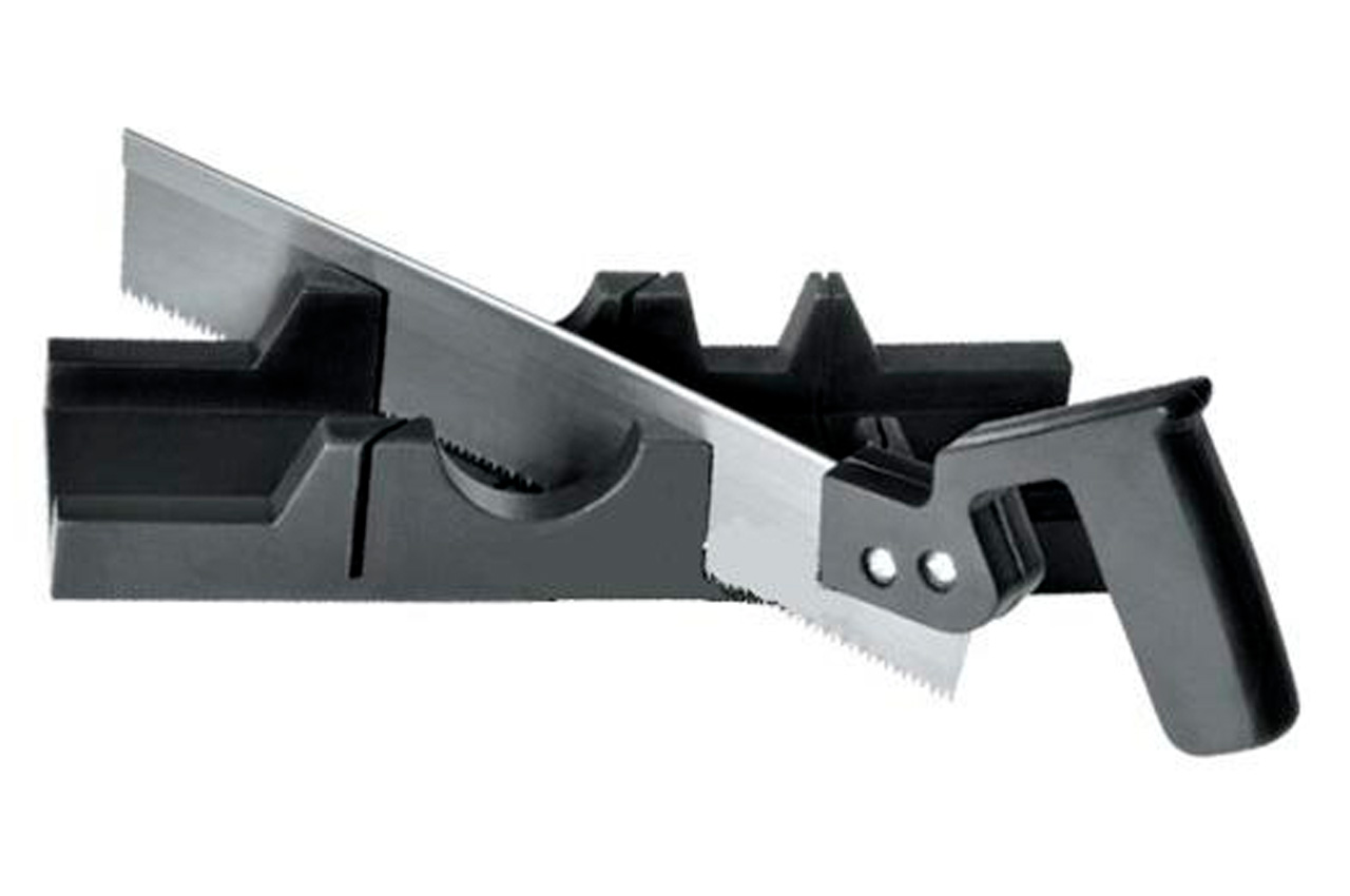 Стислі пластикове з ножівкою по дереву призначений для розпилювання дерев'яних і ламінованих матеріалів під кутом 45 ° і 90 °. Має обмежувач по верхньому краю полотна, що запобігає пошкодження зубів ножівки. Полотно ножівки має довжину 300 мм виготовлено з високоякісної сталі 55 HRC.