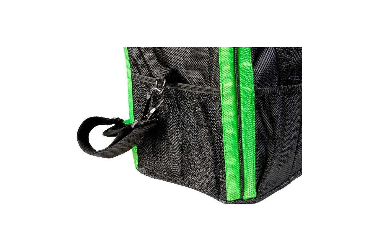 Призначається для зберігання та транспортування інструментів або інших речей. • 23 кишені: 14 зовнішніх та 9 внутрішніх • щільність тканини 1680 DEN для зовнішніх та 600 DEN для внутрішніх кишень • посилене дно • міцний водостійкий матеріал • об'ємний основний відсік • посилена блискавка • знімний ремінець • вага 1440 гр