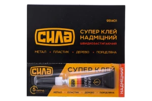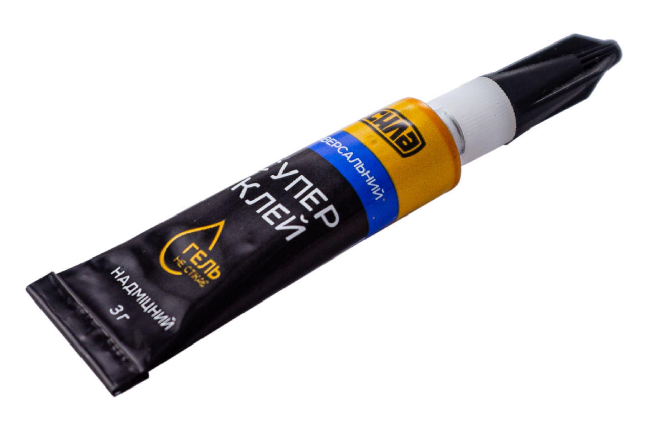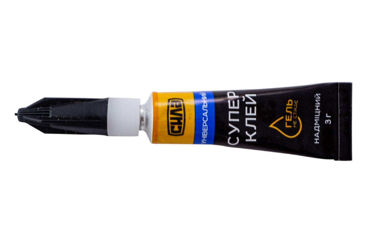 Супер клей Сила - 3 г гель - це універсальний секундний клей для швидкого склеювання різних видів пластмас, гуми, металів, дерева, порцеляни, кераміки, шкіри, тканин, картону та паперу. Дуже зручний для застосування на похилих і нерівних поверхнях, т.к. не розтікається.