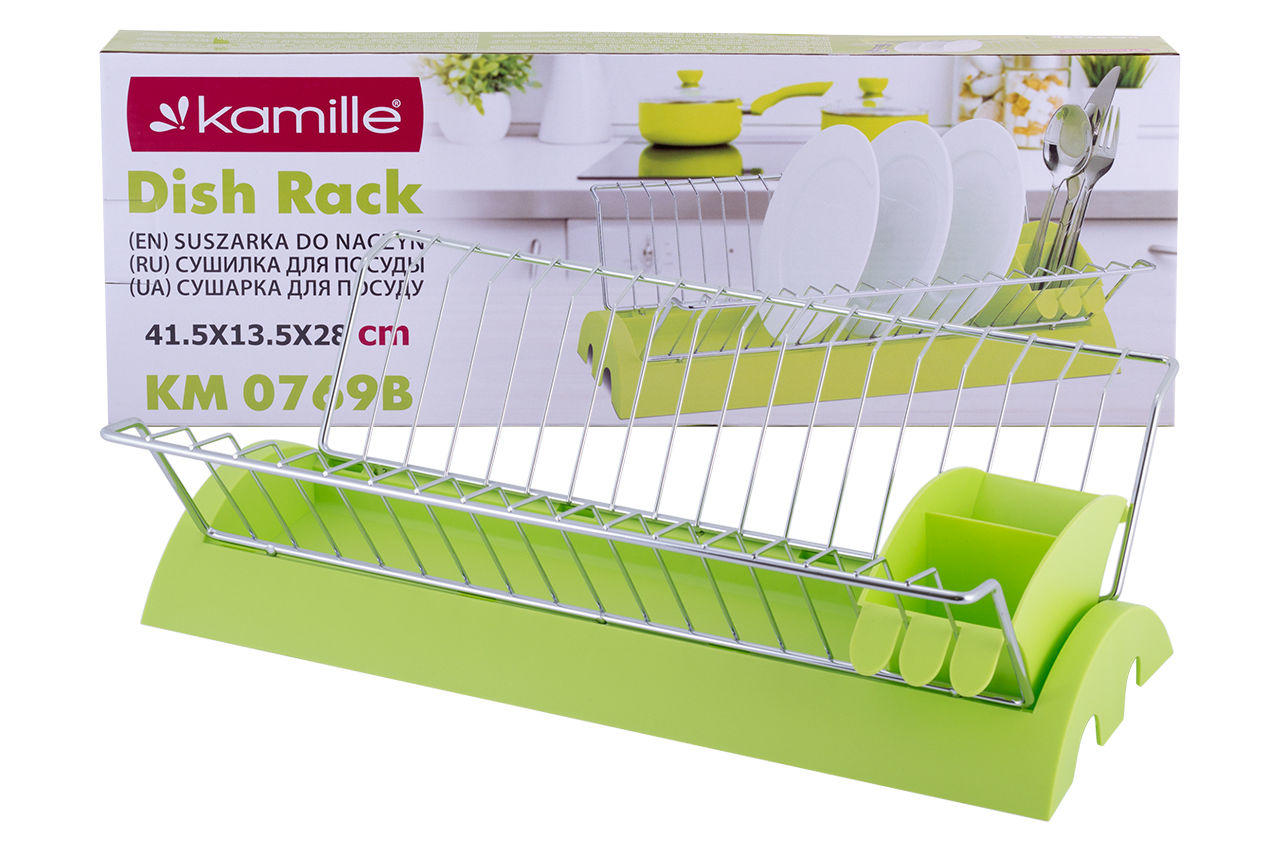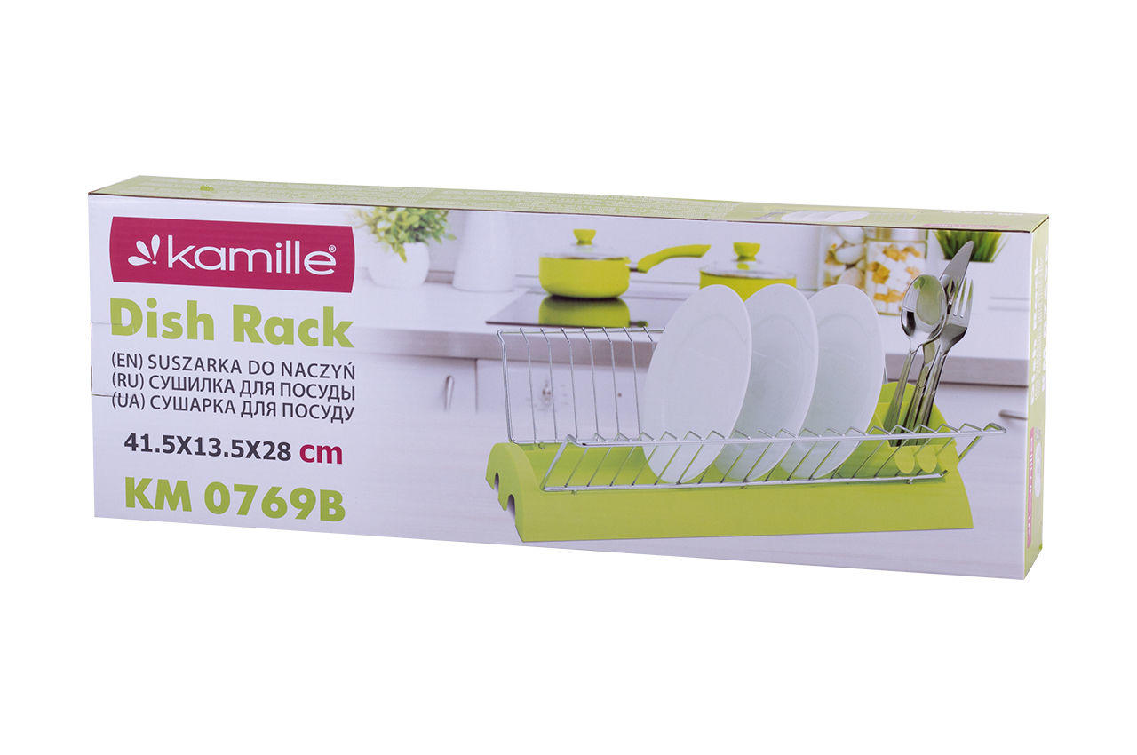 Придбавши сушарку від фірми Kamille, Ви забезпечите себе висококласним і практичним виробом. Це містка сушарка, яка має невеликі розміри, завдяки чому не займатиме багато місця на кухні. Виконана з міцної та корозіїстійкої хромованої сталі, а піддон зроблений з пластику.