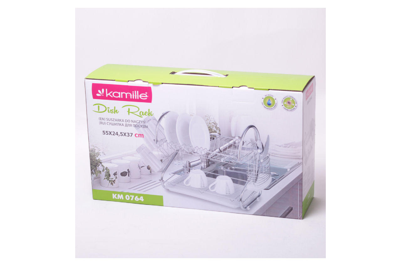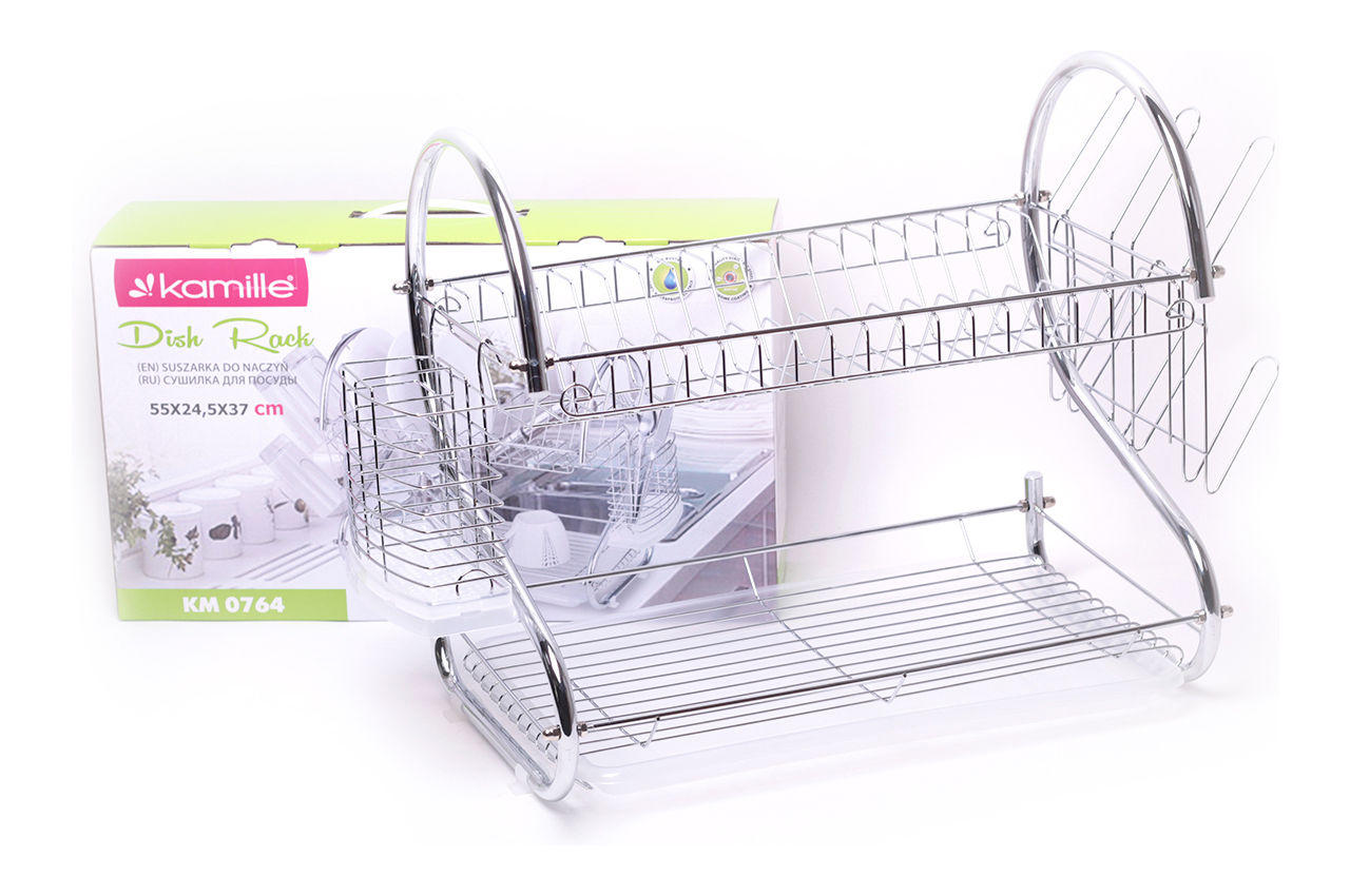 Придбавши сушарку від фірми Kamille, Ви забезпечите себе висококласним і практичним виробом. Це містка сушарка, яка має невеликі розміри, завдяки чому не займатиме багато місця на кухні. Виконана з міцної та корозіїстійкої хромованої сталі, а піддон зроблений з пластику.