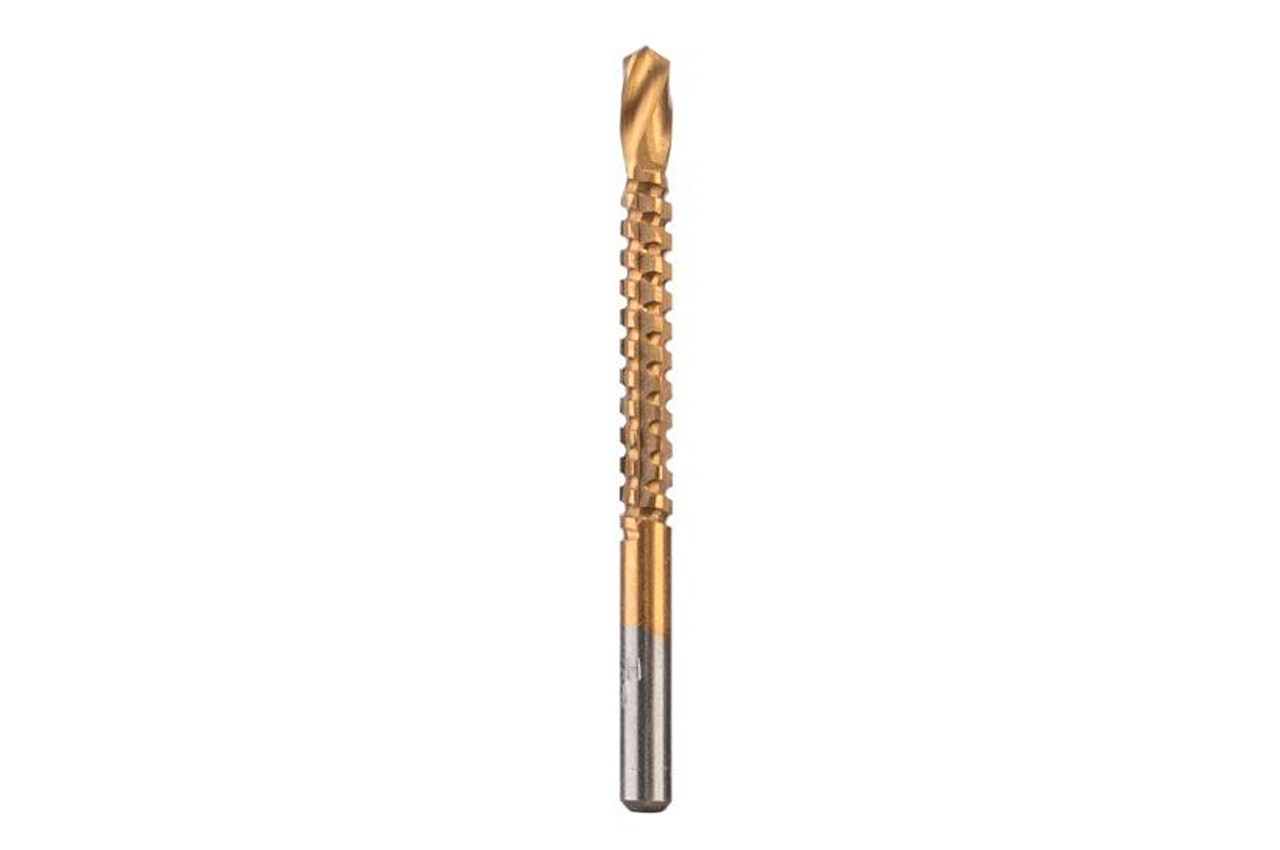 Універсальне фрезерне свердло призначене для свердління і розсвердлювання боковою гранню отворів довільної форми в деревині, пластику, металі. Свердла виготовлені зі швидкоріжучої сталі, при цьому поверхня робочої зони вкрита нітридом титана. Таке покриття підвищує зносостійкість ріжучих крайок і захищає від механічних пошкоджень. Діаметр свердла 6 мм; Довжина свердла 88 мм.