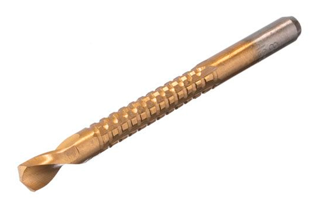 Універсальне фрезерне свердло призначене для свердління і розсвердлювання боковою гранню отворів довільної форми в деревині, пластику, металі. Свердла виготовлені зі швидкоріжучої сталі, при цьому поверхня робочої зони вкрита нітридом титана. Таке покриття підвищує зносостійкість ріжучих крайок і захищає від механічних пошкоджень. Діаметр свердла 8 мм; Довжина свердла 98 мм.