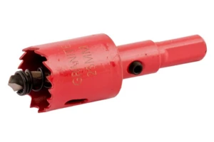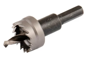 Коронка біметал (ціфенбор) - це інструмент для свердління наскрізних отворів великого діаметру в листової сталі, кольорових металах, деревині, ДСП, фанери і пластику. Гладкі краю і рівний рез, забезпечуються завдяки точному свердління по колу і агресивного розташуванню зубів зі змінним кроком. Максимальна глибина свердління 38 мм. При глибокому свердлінні стружка віддаляється через отвори на бічних стінках. Діаметр троса: 25 мм