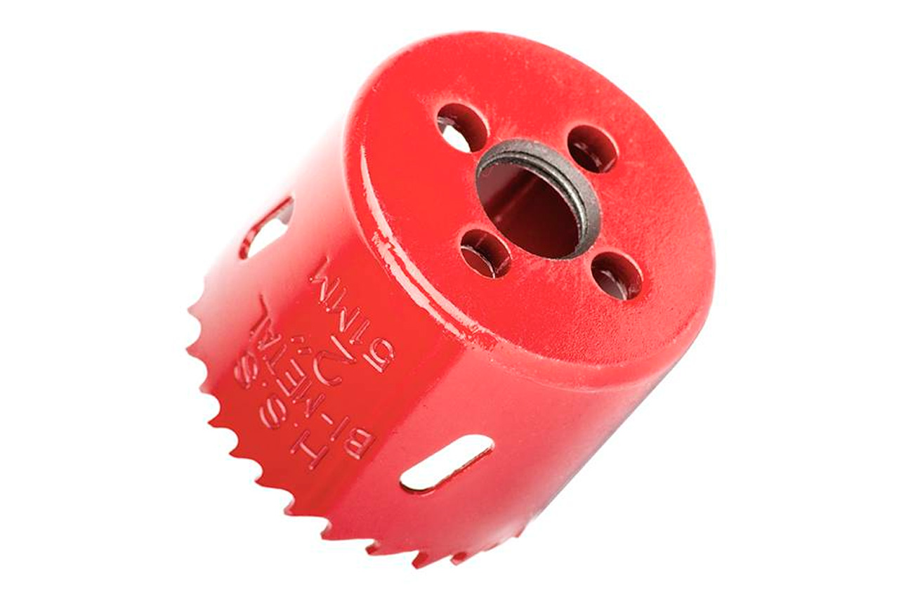 Коронка біметал (ціфенбор) - це інструмент для свердління наскрізних отворів великого діаметру в листової сталі, кольорових металах, деревині, ДСП, фанери і пластику. Гладкі краю і рівний рез, забезпечуються завдяки точному свердління по колу і агресивного розташуванню зубів зі змінним кроком. Максимальна глибина свердління 38 мм. При глибокому свердлінні стружка віддаляється через отвори на бічних стінках. Діаметр троса: 51 мм