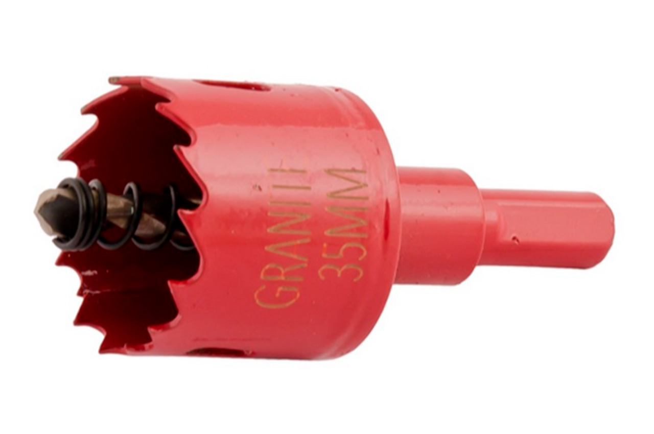Свердло корончате Bi-Metal HSS M42 діаметром 35 мм від GRANITE призначене для швидкого та точного свердління різноманітних матеріалів, таких як метал, дерево, пластик і композити. Виготовлене з високоякісної біметалевої сталі (HSS) з 8% вмістом кобальту (M42), це свердло забезпечує відмінну продуктивність і довговічність. Свердло корончате Bi-Metal HSS M42 діаметром 35 мм від GRANITE ідеально підходить для створення отворів у металі, дереві, пластику та композитах. Це універсальний інструмент, який знайде застосування в будівництві, ремонті, монтажі, автомеханіці та інших галузях.