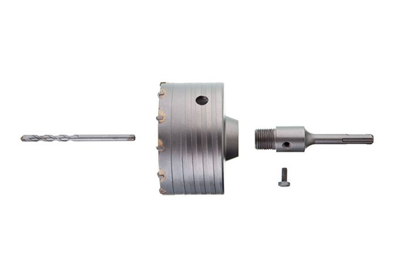 Свердло корончате (фреза) по бетону "Intertool" з твердосплавними побідитовими напайками, надсилаються свердлом і хвостовиком SDS +. Матеріал - сталь 40Cr. Діаметр свердління - 105 мм, довжина хвостовика - 100 мм. Застосування: для цегли та бетону