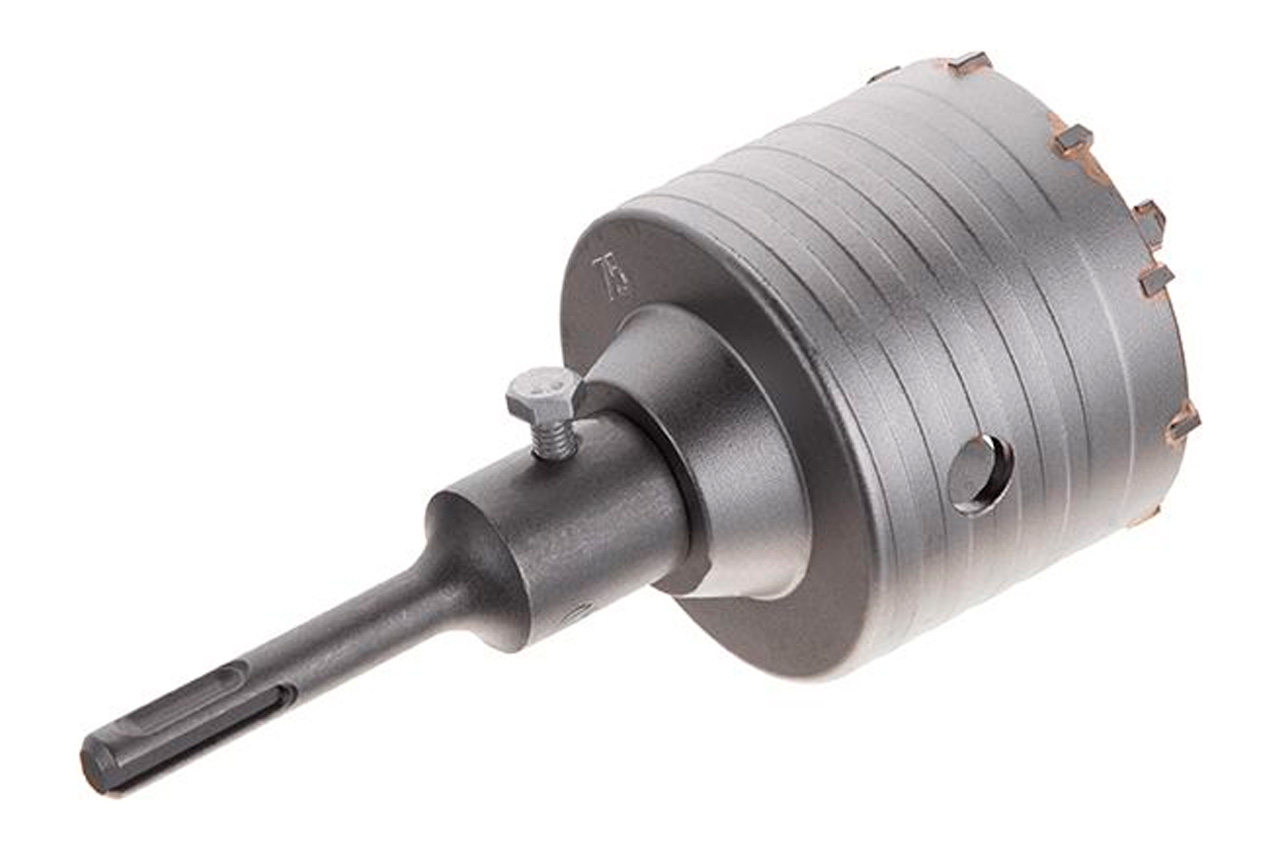 Свердло корончате (фреза) по бетону "Intertool" з твердосплавними побідитовими напайками, надсилаються свердлом і хвостовиком SDS +. Матеріал - сталь 40Cr. Діаметр свердління - 75 мм, довжина хвостовика - 100 мм. Застосування: для свердління отворів у міцних абразивних матеріалах, таких як цегла, бетон, пінобетон, камінь та ін.