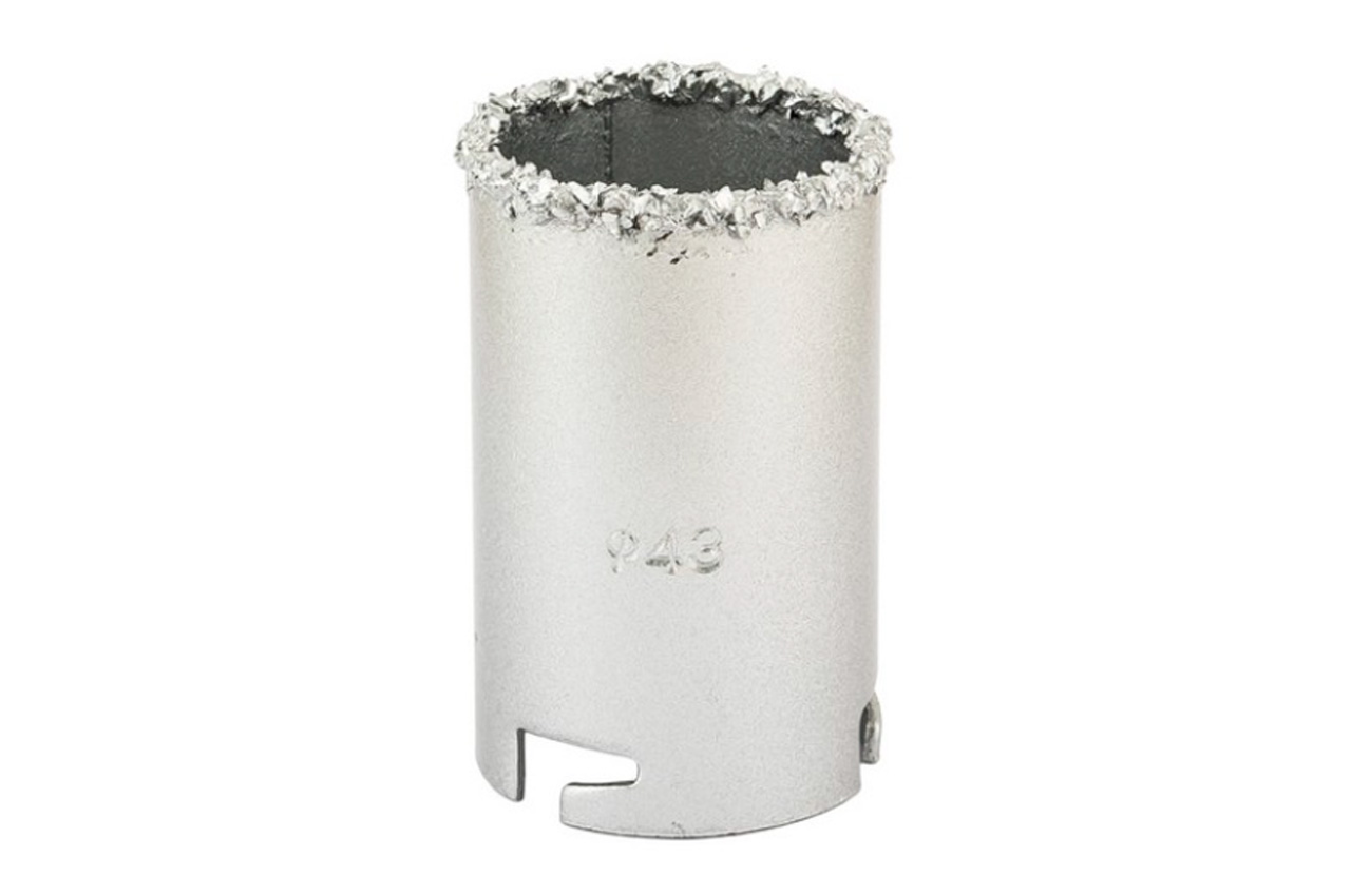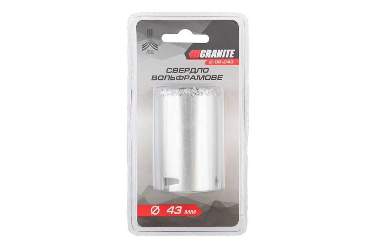 Виготовлено зі сталі з вольфрамовим напиленням; використовується для кераміки, скла, пластику, бетону, цегли; під час свердління бетону та цегли вимагає охолодження водою; рекомендована частота обертання 800-1500 об / хв