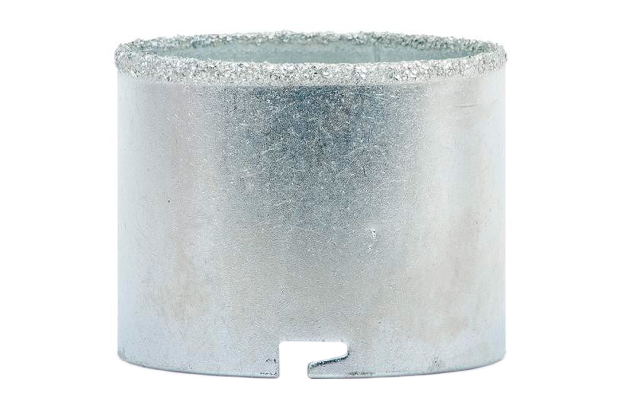 Коронки з карбід вольфрамової крихтою призначені для свердління рівних наскрізних отворів у керамічній і кахельної плитці, пористого бетону, цеглі, шифер і ін. Використовуються з шуруповертами, дрилями і легкими перфораторами в безударном режимі, для висвердлювання отворів під розетки, вимикачі, труби і комунікації. Діаметр свердла: 103 мм