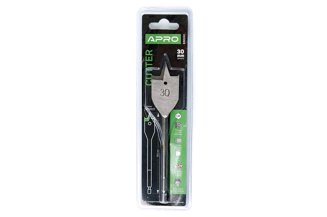 Свердло по дереву перове Apro - це пурове свердло призначене для чистого свердління отворів в дерев'яних поверхнях. Діаметр: 30 мм, Довжина: 150мм
