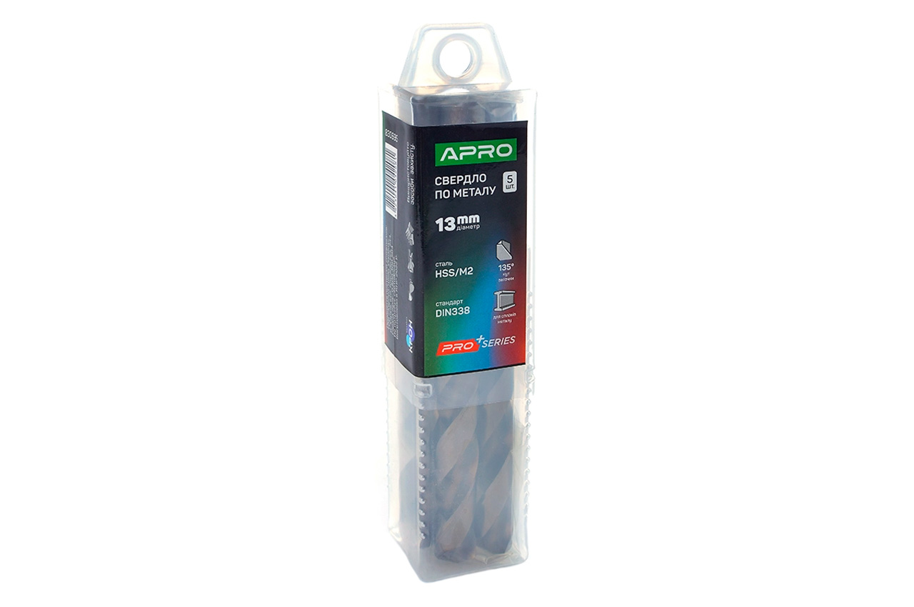 Свердло по металу Apro - призначене для свердління отворів у металевих матеріалах, включаючи сталь, чавун, алюміній та інші сплави. Діаметр 13,0 мм; Швидкорізальна сталь марки М2.
